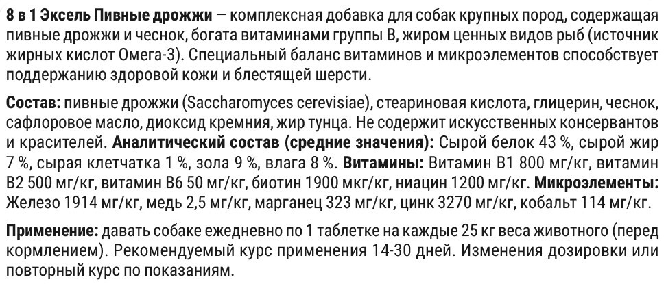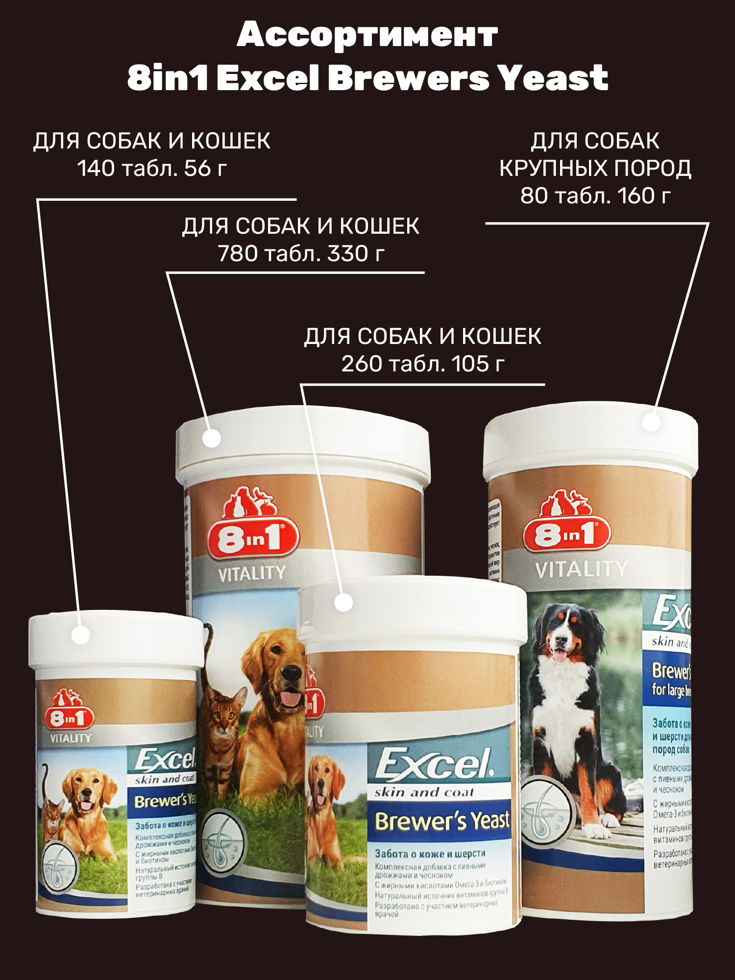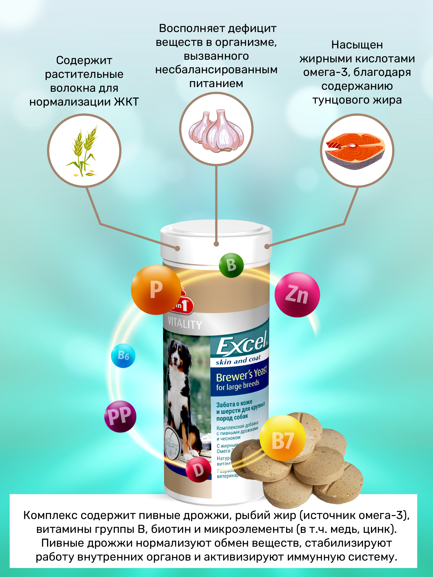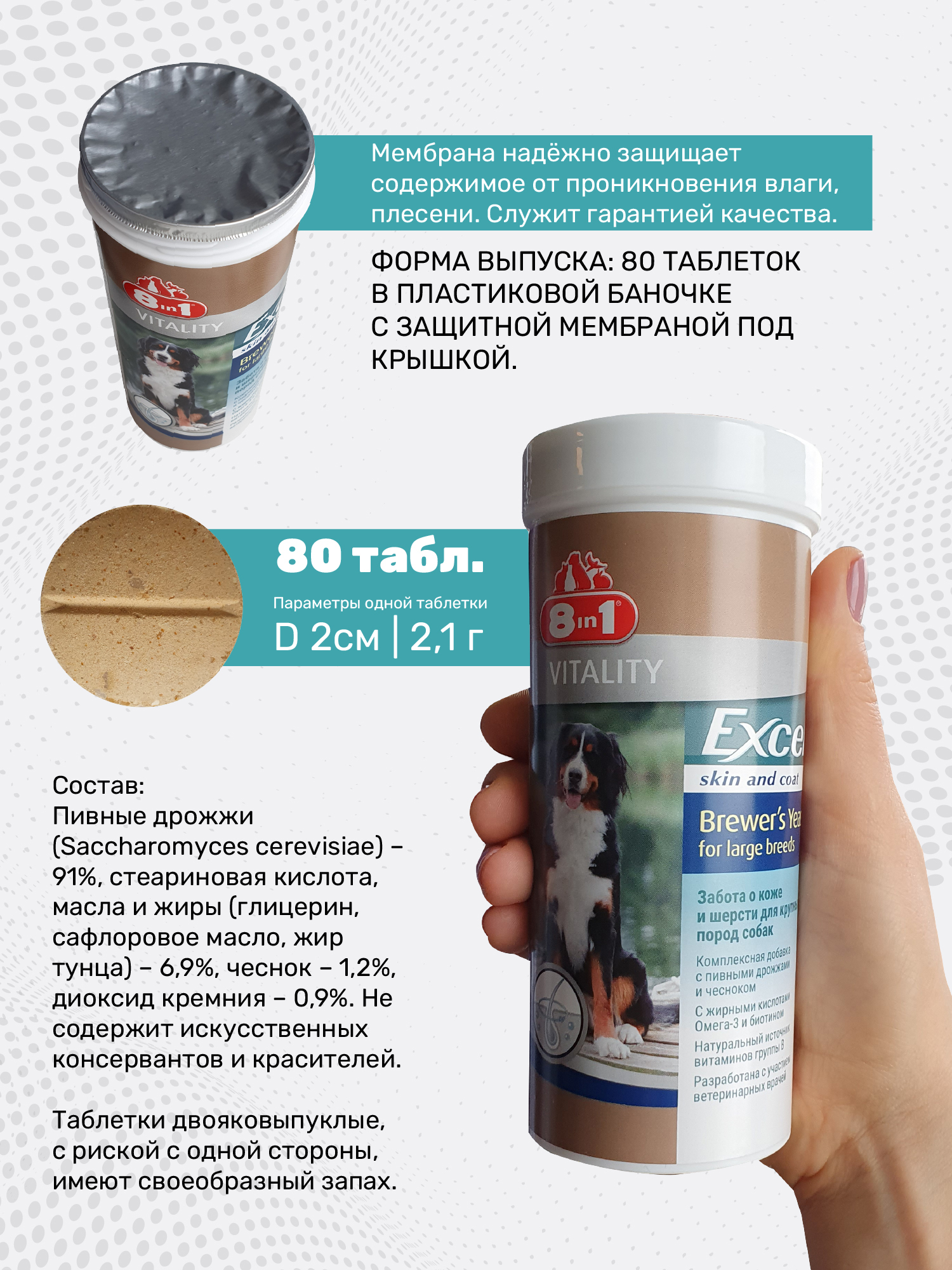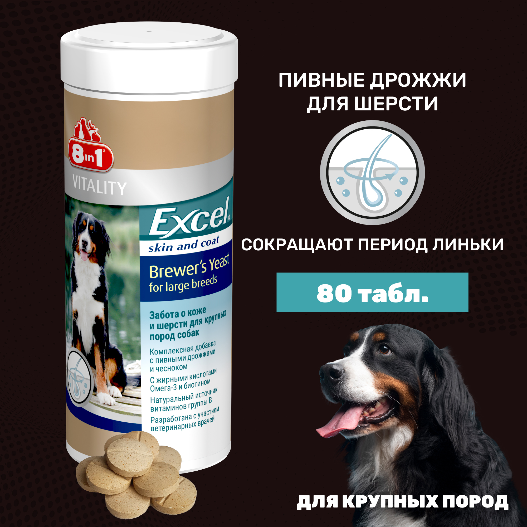 8in1 Пивные дрожжи Excel Brewers Yeast для крупных пород собак, 80 таблеток
