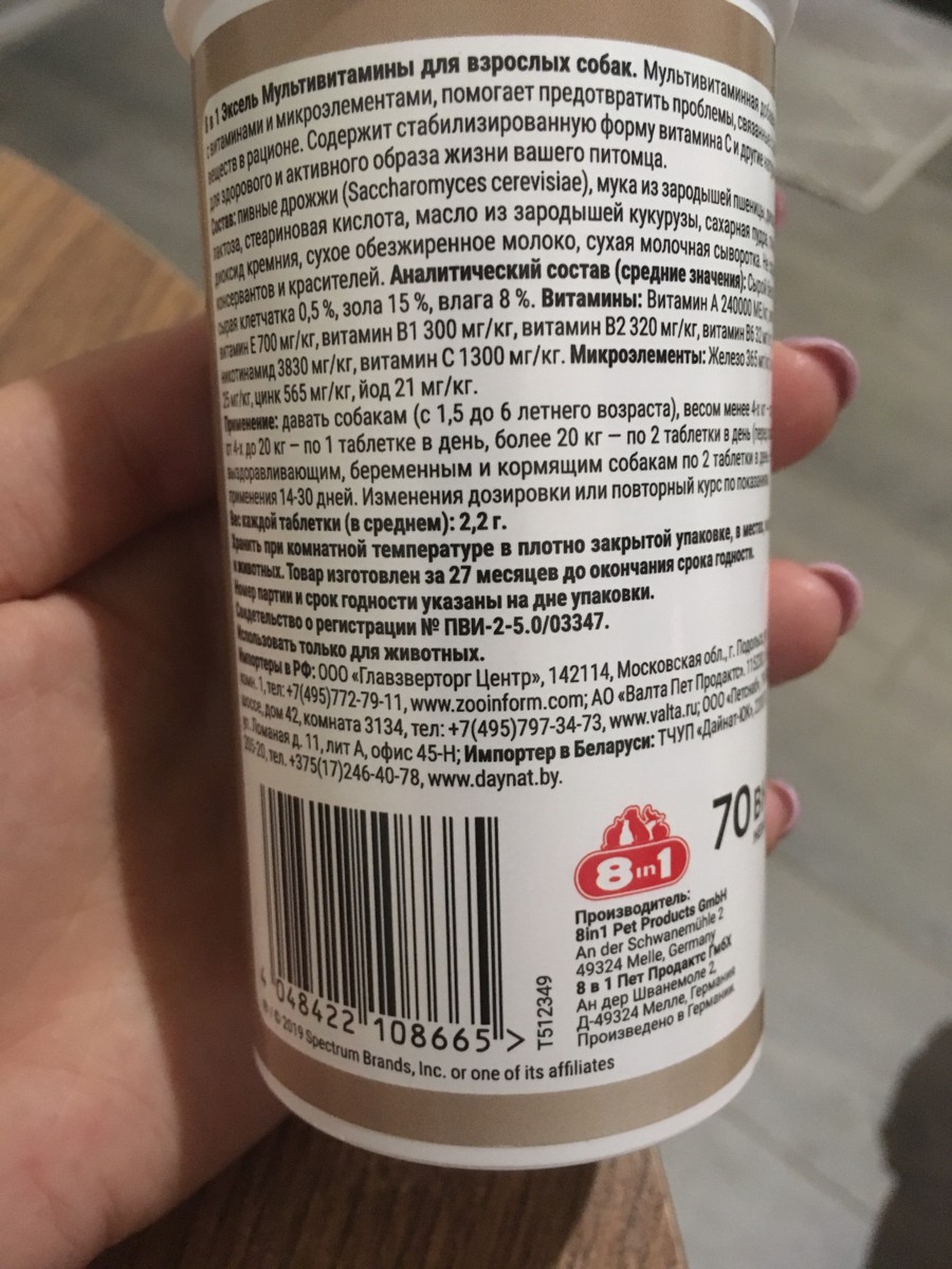 8в1 Эксель Мультивитамины для взрослых собак (70 табл.)