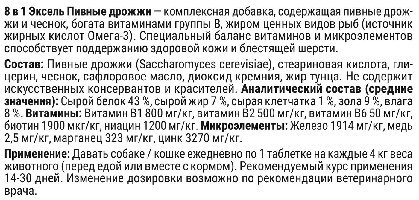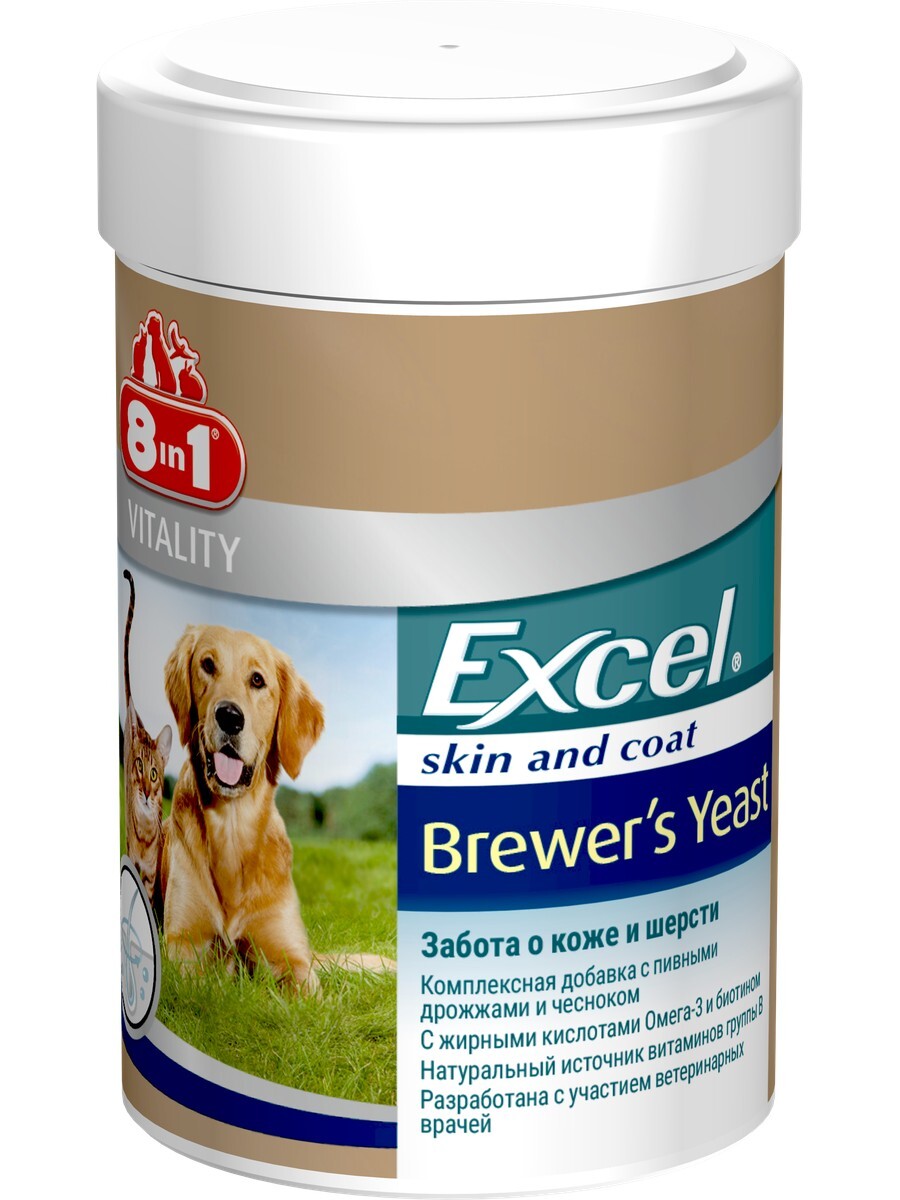 8in1 Пивные дрожжи EXСEL Brewers Yeast 140 табл./100 ml для собак и кошек