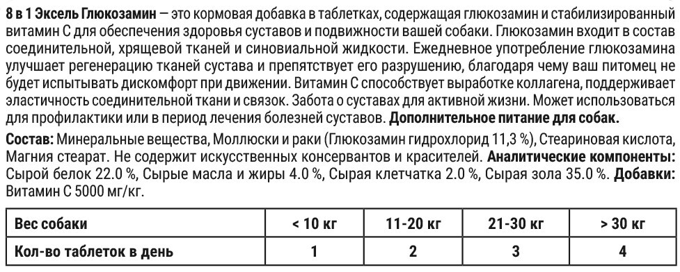 8in1 Добавка к корму Excel Glucosamine для здоровья и подвижности суставов собак, 55 таблеток