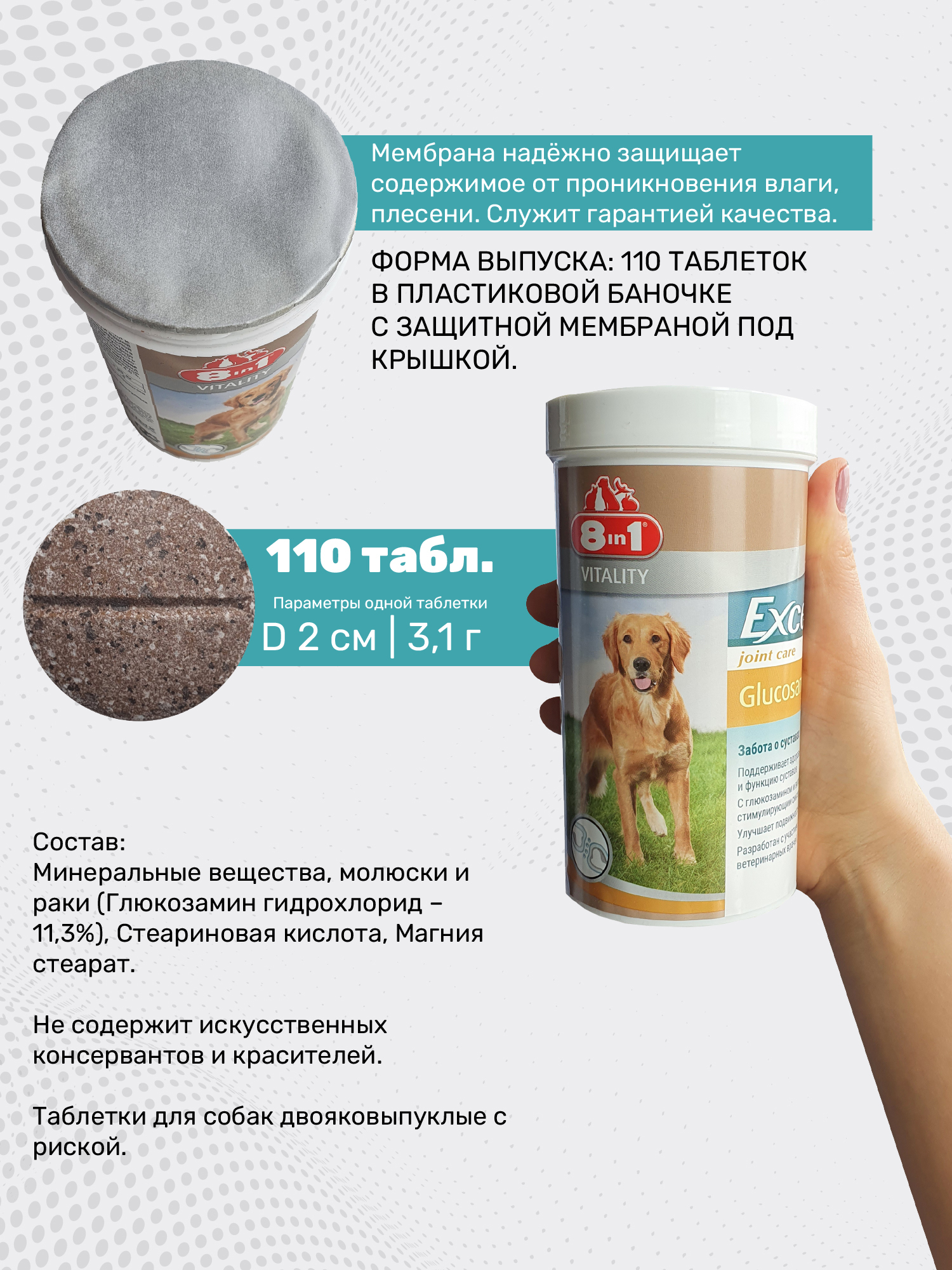 8in1 Добавка к корму Excel Glucosamine для здоровья и подвижности суставов собак, 110 таблеток