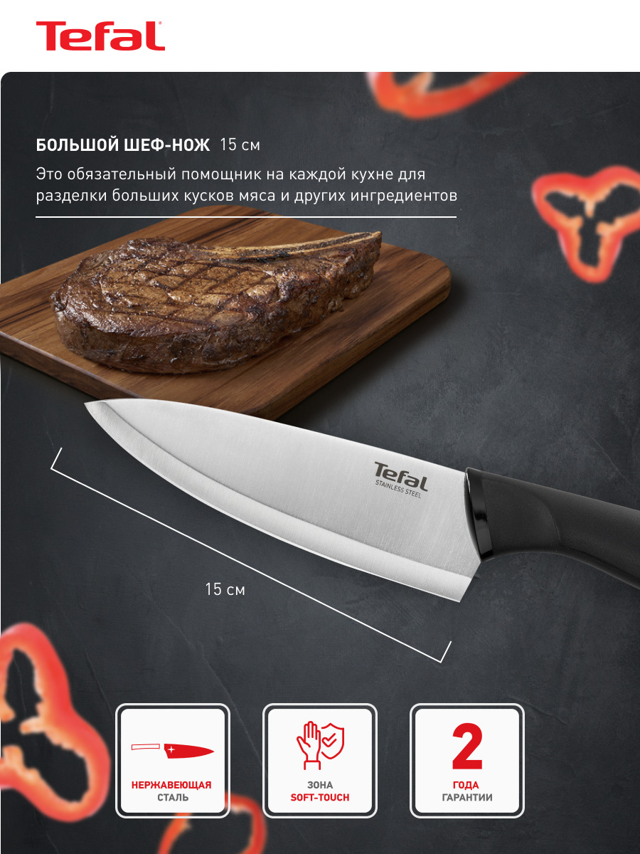 Кухонный нож поварской Tefal, длина лезвия 15 см