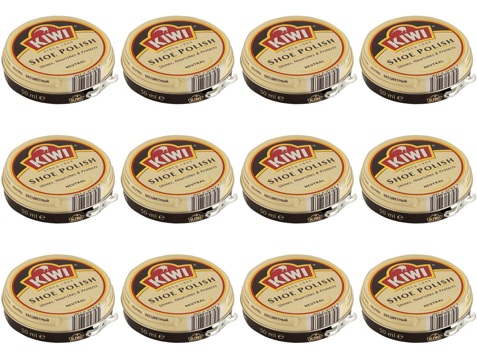 KIWI Крем для обуви в банке 50 мл БЕСЦВЕТНЫЙ, 12 шт