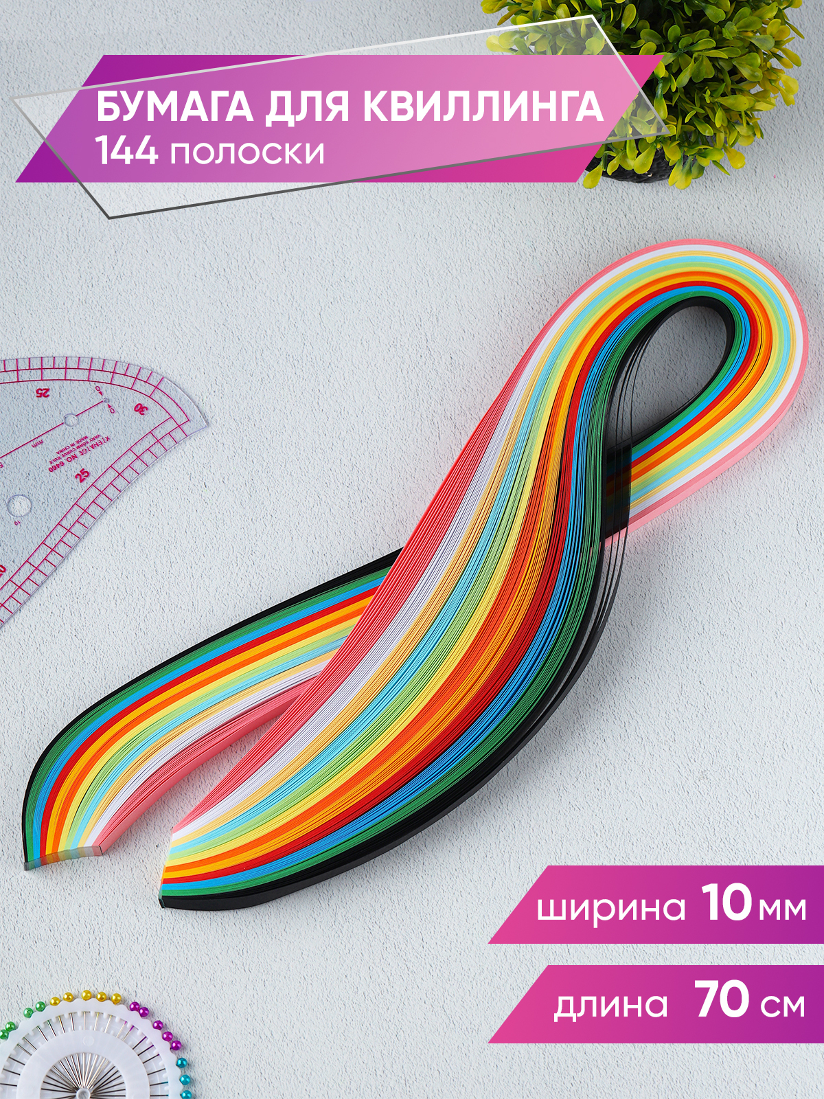 Полоски для квиллинга, 144 шт./Бумага для квиллинга Разноцветная, 70см/Набор бумаги для квиллинга