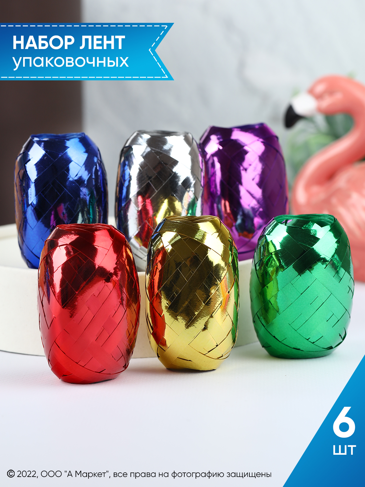 Лента упаковочная, 6 цветов по 10 м, для подарков, цветов, шаров, декора