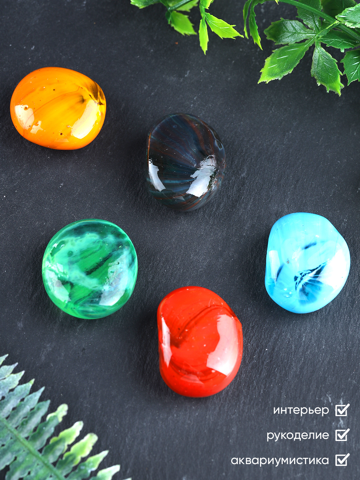 Камни для декора, 250 г / Интерьерные камни из стекла / Стеклянные камушки в аквариум