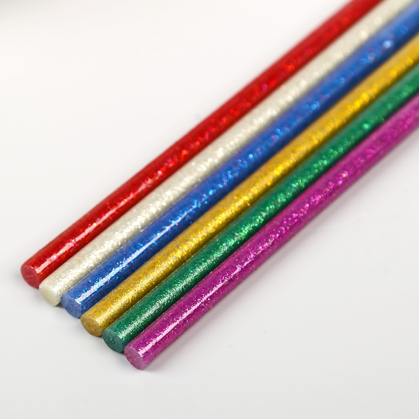 Клеевые стержни для пистолета разноцветные с блестками 7 Х 180мм (6 шт.)