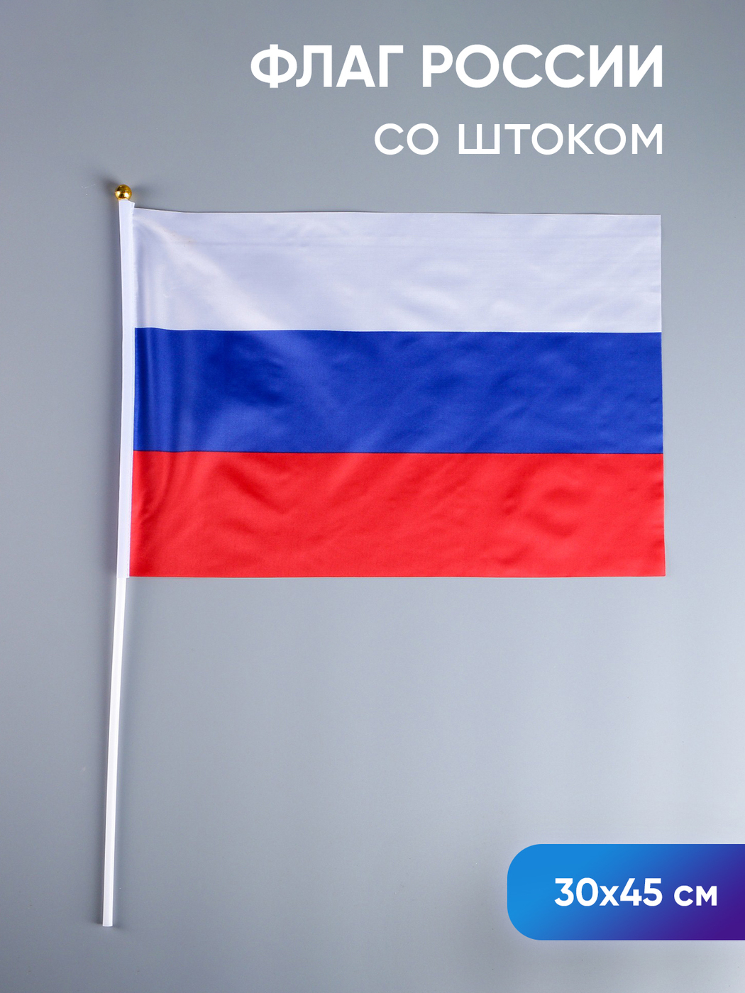 Флаг России со штоком 30х45 см / Флаг Российской Федерации / Триколор