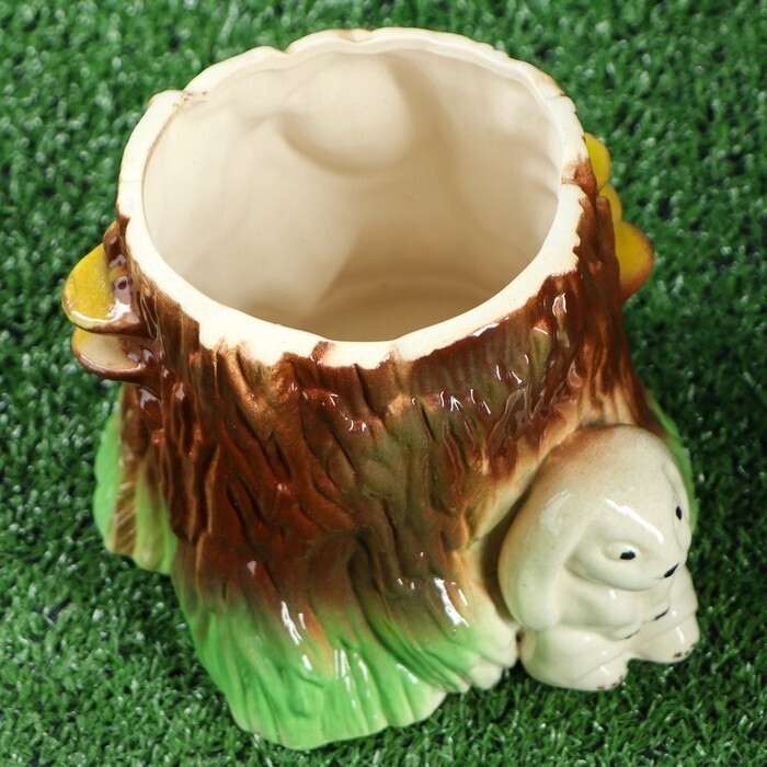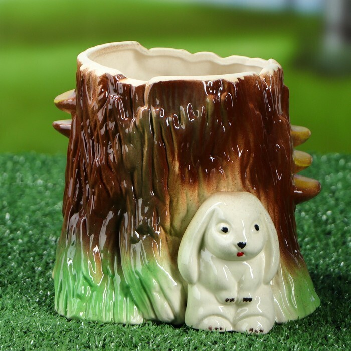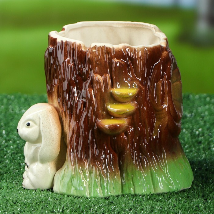 Кашпо фигурное "Пень с зайцем", 1,5 л / Интерьерный декор / Дизайн интерьера / Кашпо для дома / Горшок кашпо