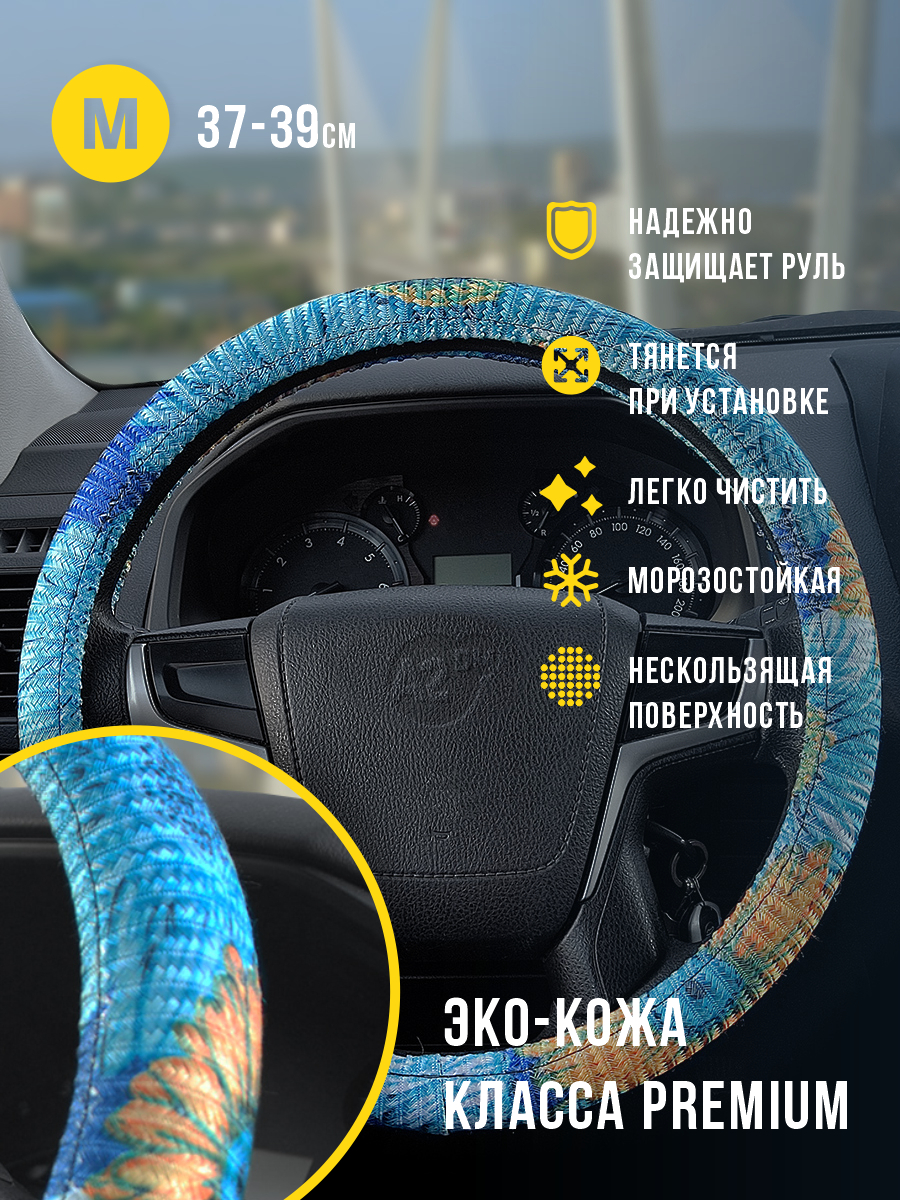 Оплетка на руль / чехол на руль, перфорированная эко кожа, размер М (37см - 38см - 39см)