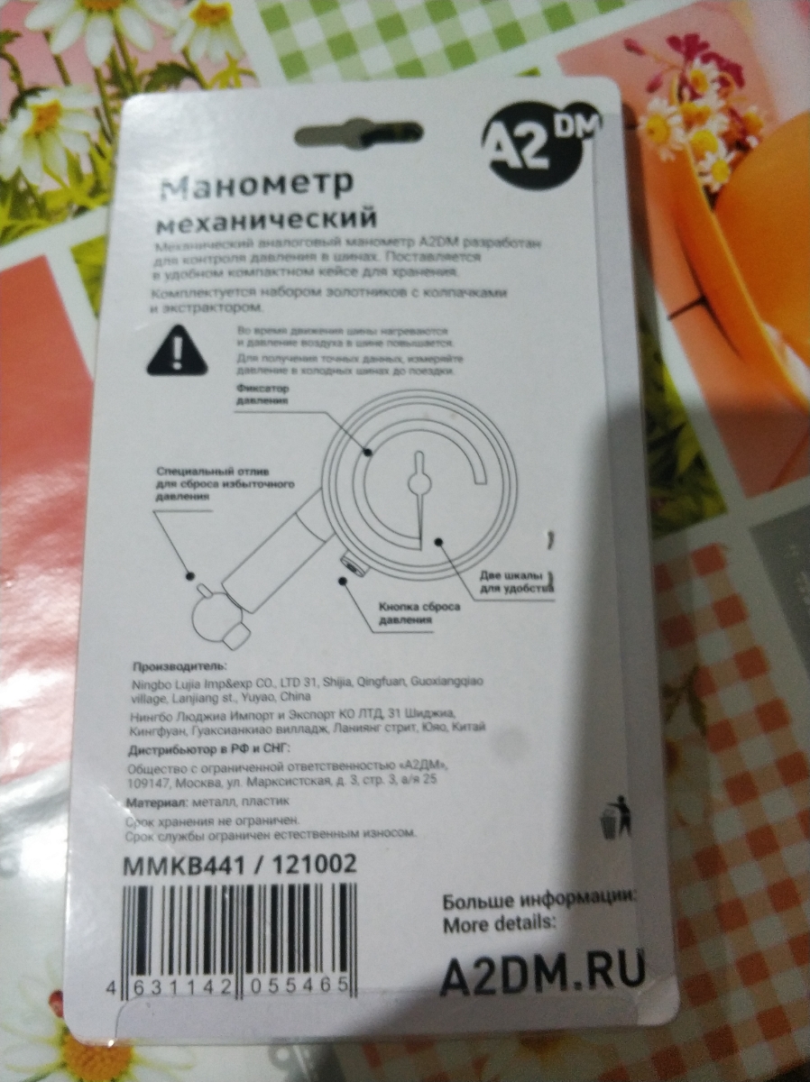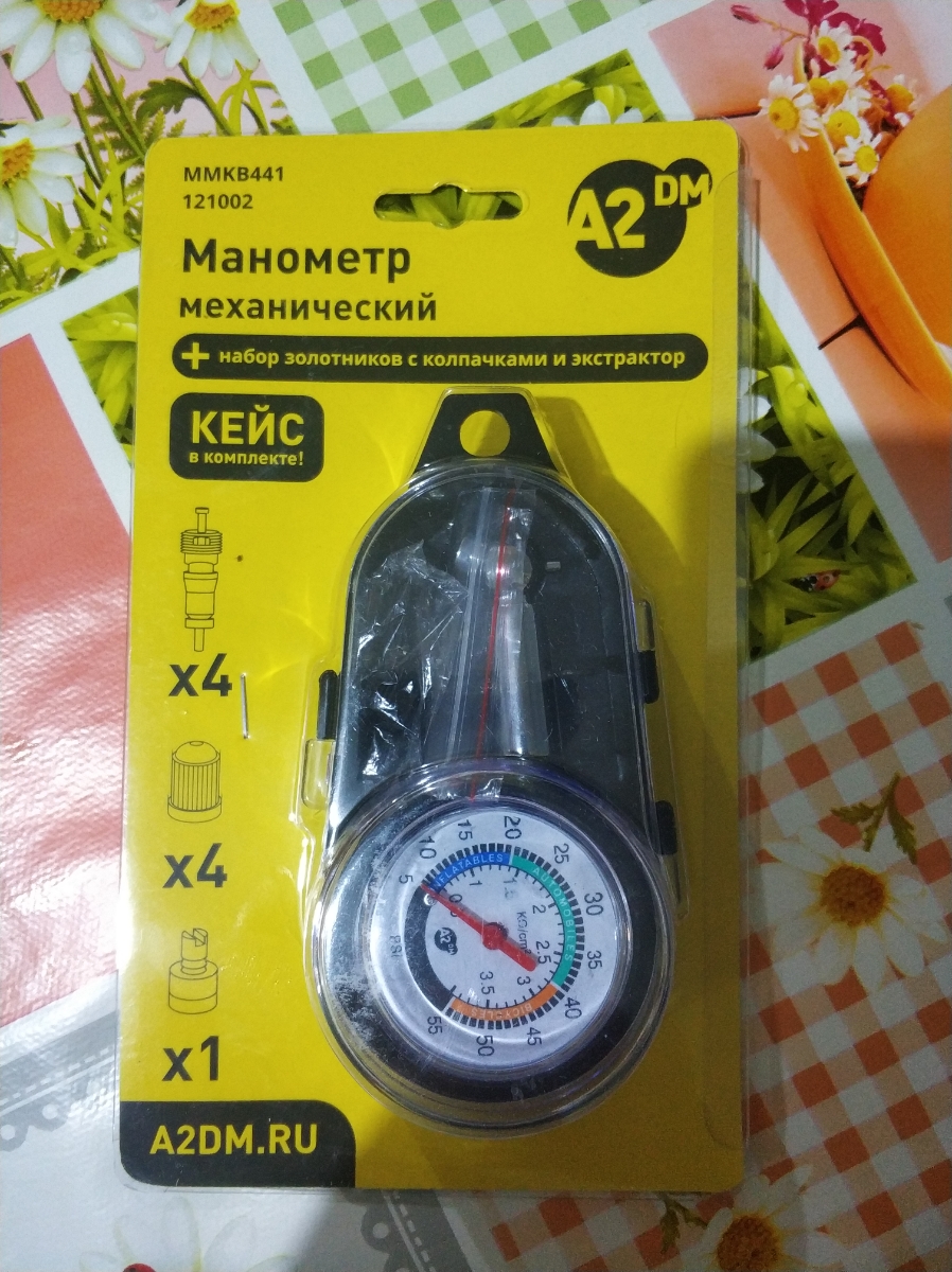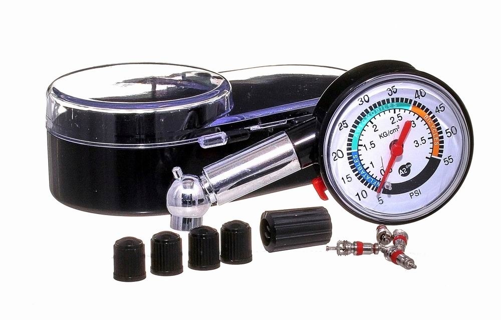 Манометр механический, кейс + набор золотников с колпачками + экстрактор