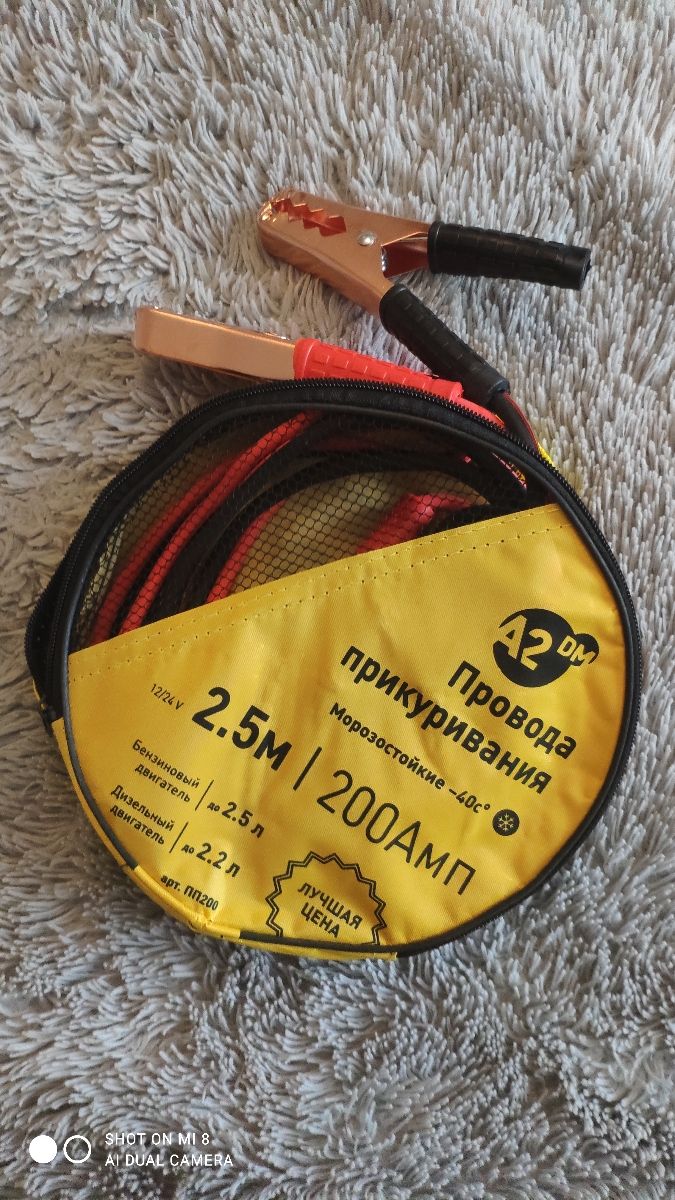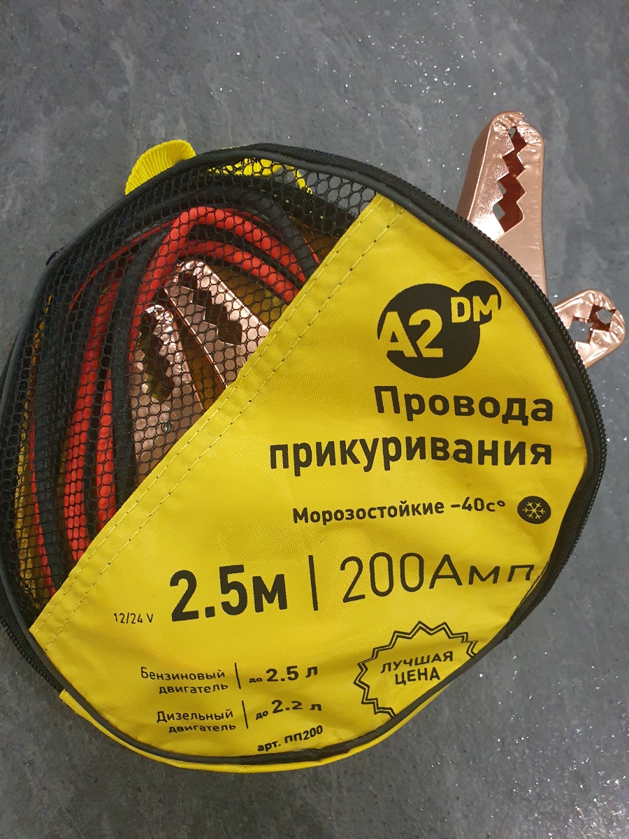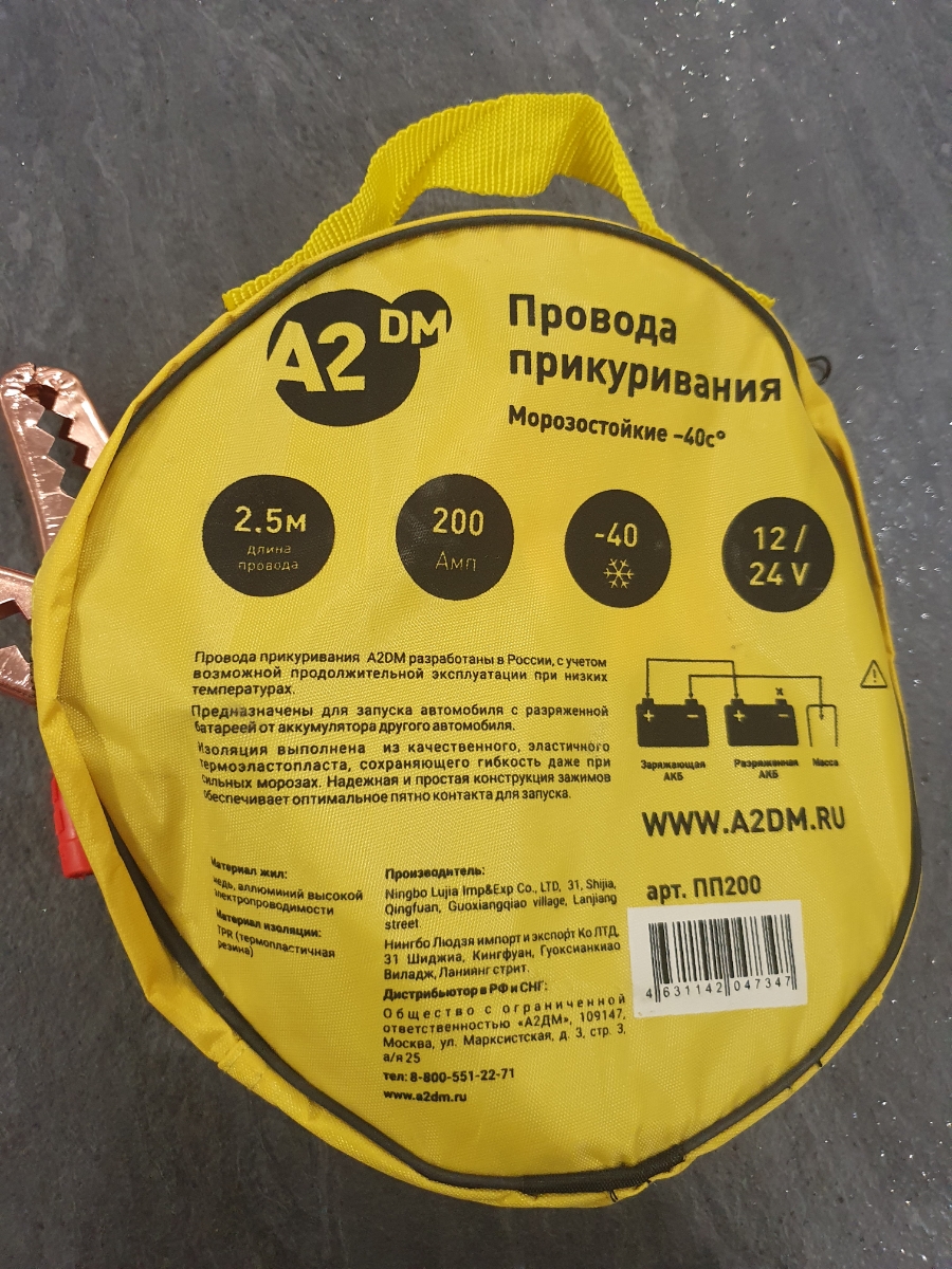 Провода прикуривания A2DM в сумке, морозостойкие, 2.5 м, 200 А