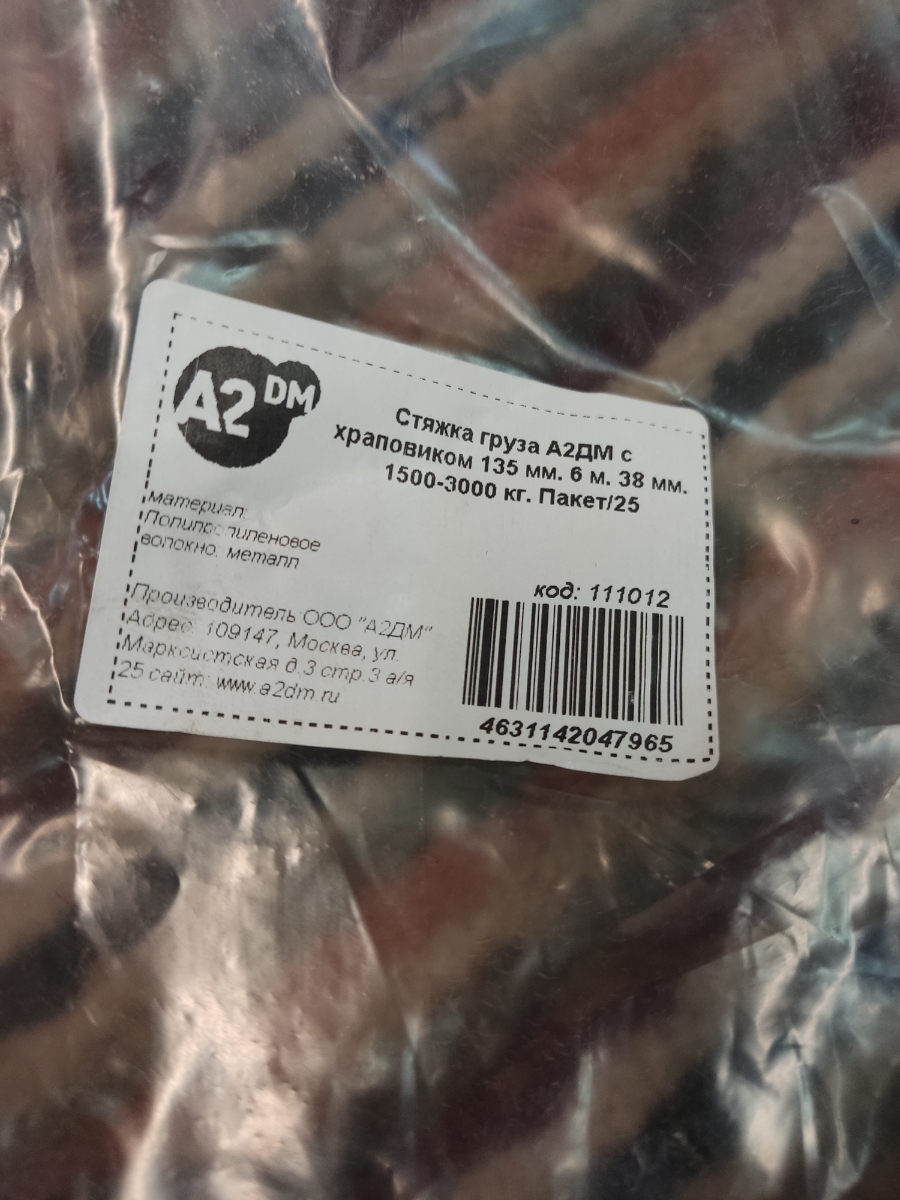Комплект (2шт.) Стяжка груза А2ДМ с храповиком 110 мм. 5 м. 25 мм. 500-900 кг. Пакет