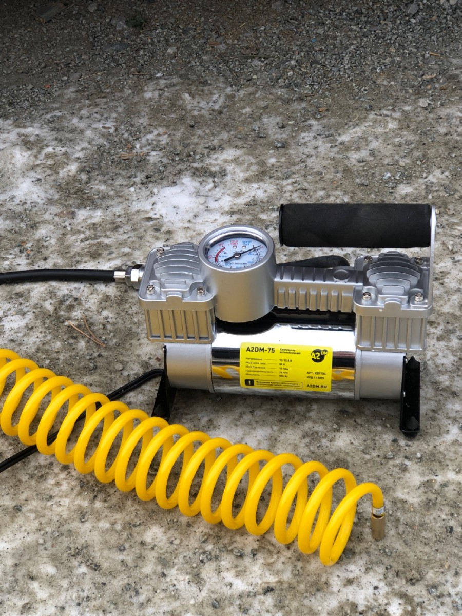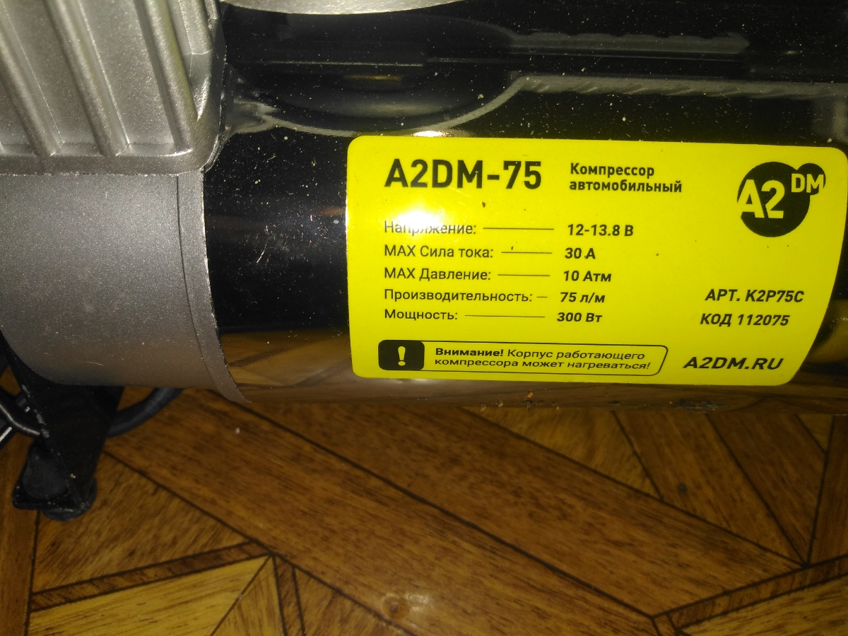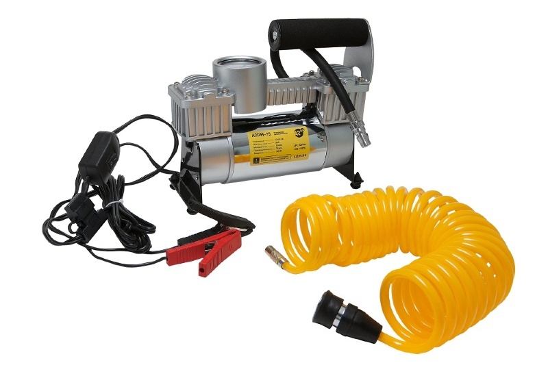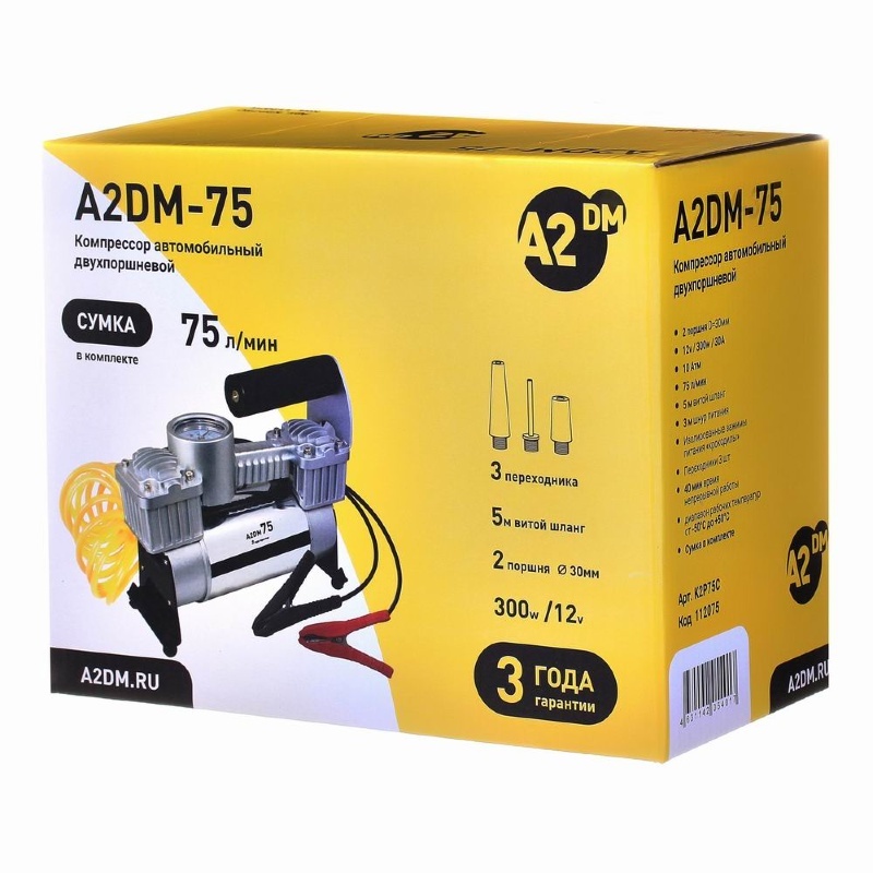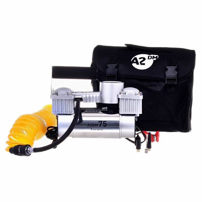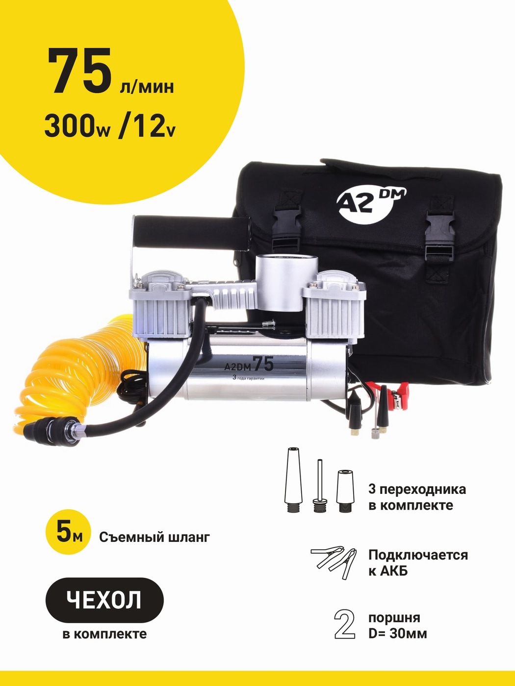 Компрессор A2DM 75, 12В/30А, 10Атм, 300Вт, 75л/мин, съемный шланг 5м, от АКБ, переходники 3 шт, сумка