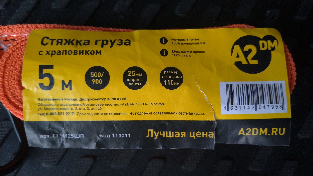 Стяжка груза с храповиком 110 мм. 5 м. 25 мм. 500-900 кг.