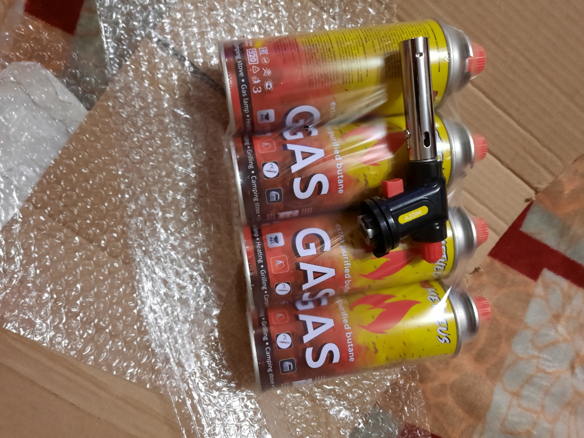 Горелка газовая с пьезоподжигом и газ цанговый 4 баллона