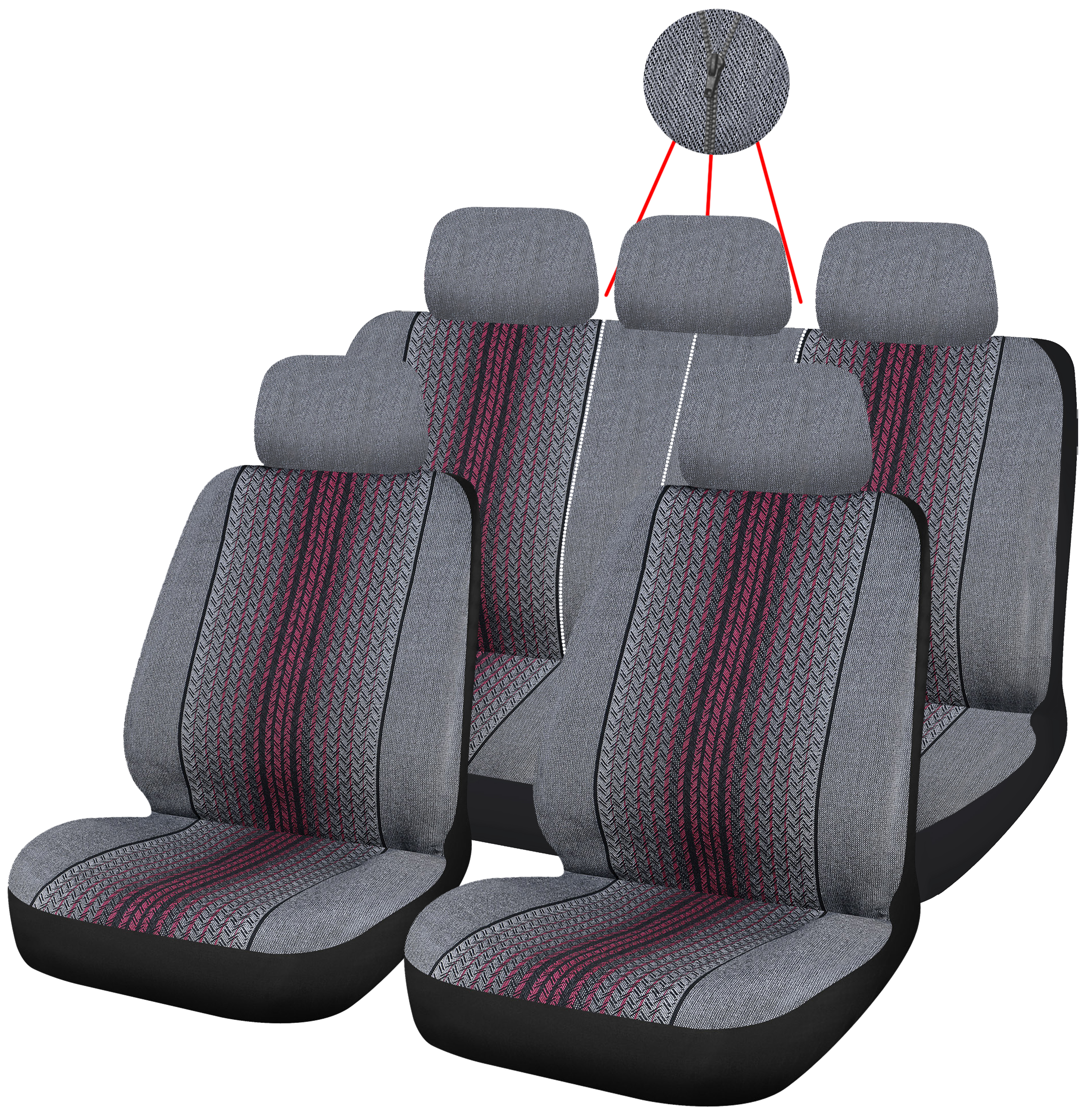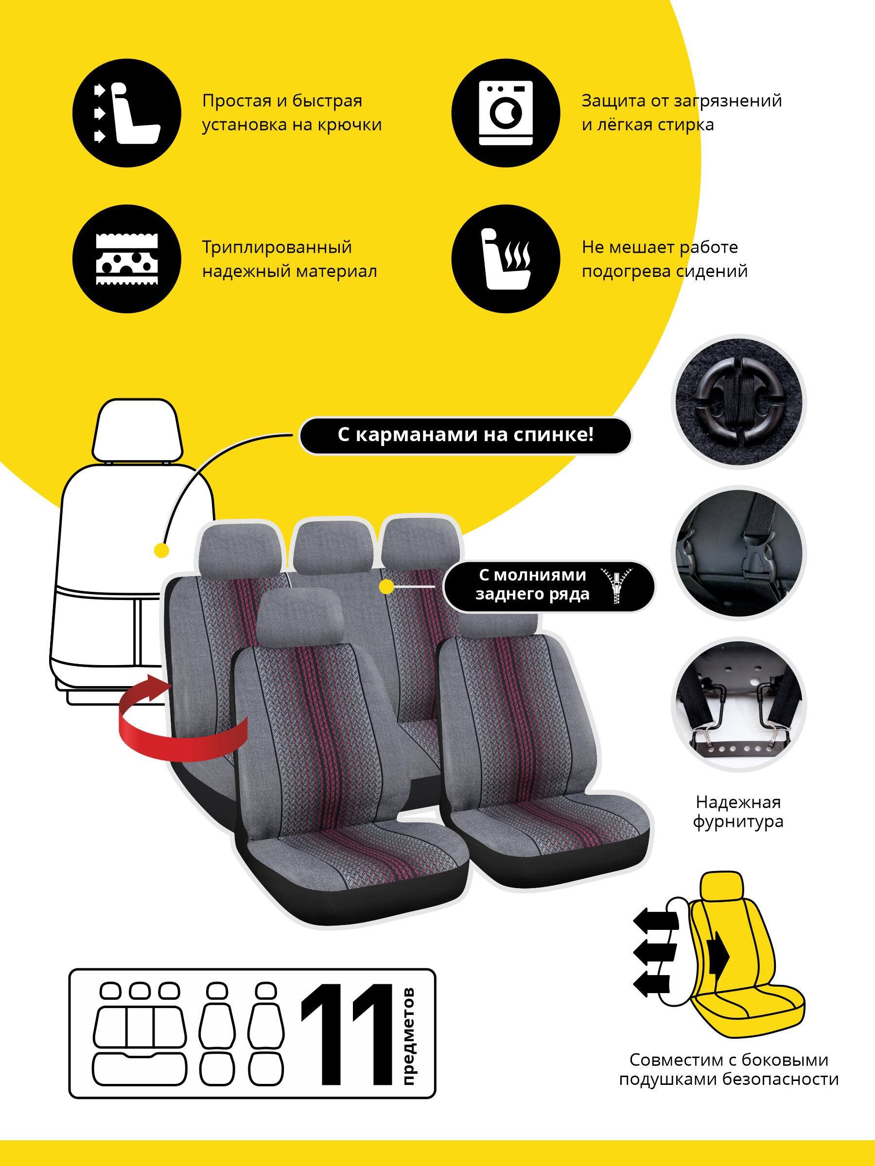 Чехлы для авто A2DM 5мм АЛЕНТУРА, 11 предметов, гобелен-полиэстер, серый/вишневый
