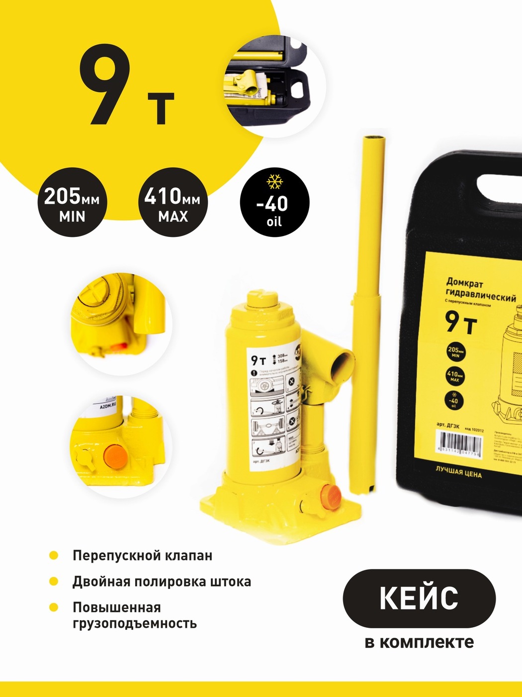 Домкрат автомобильный Бутылочный Гидравлический A2DM 102013, 5 т.