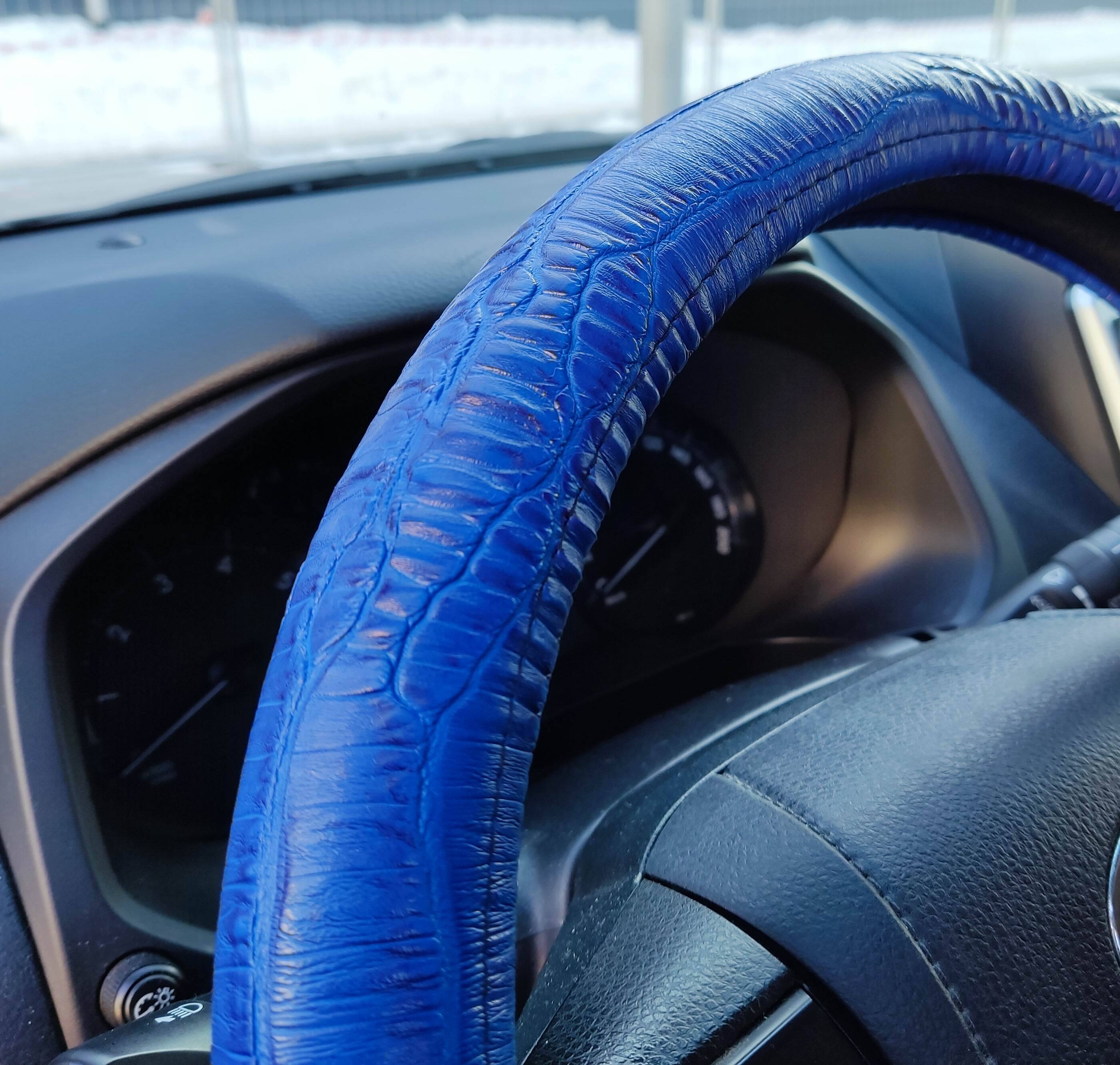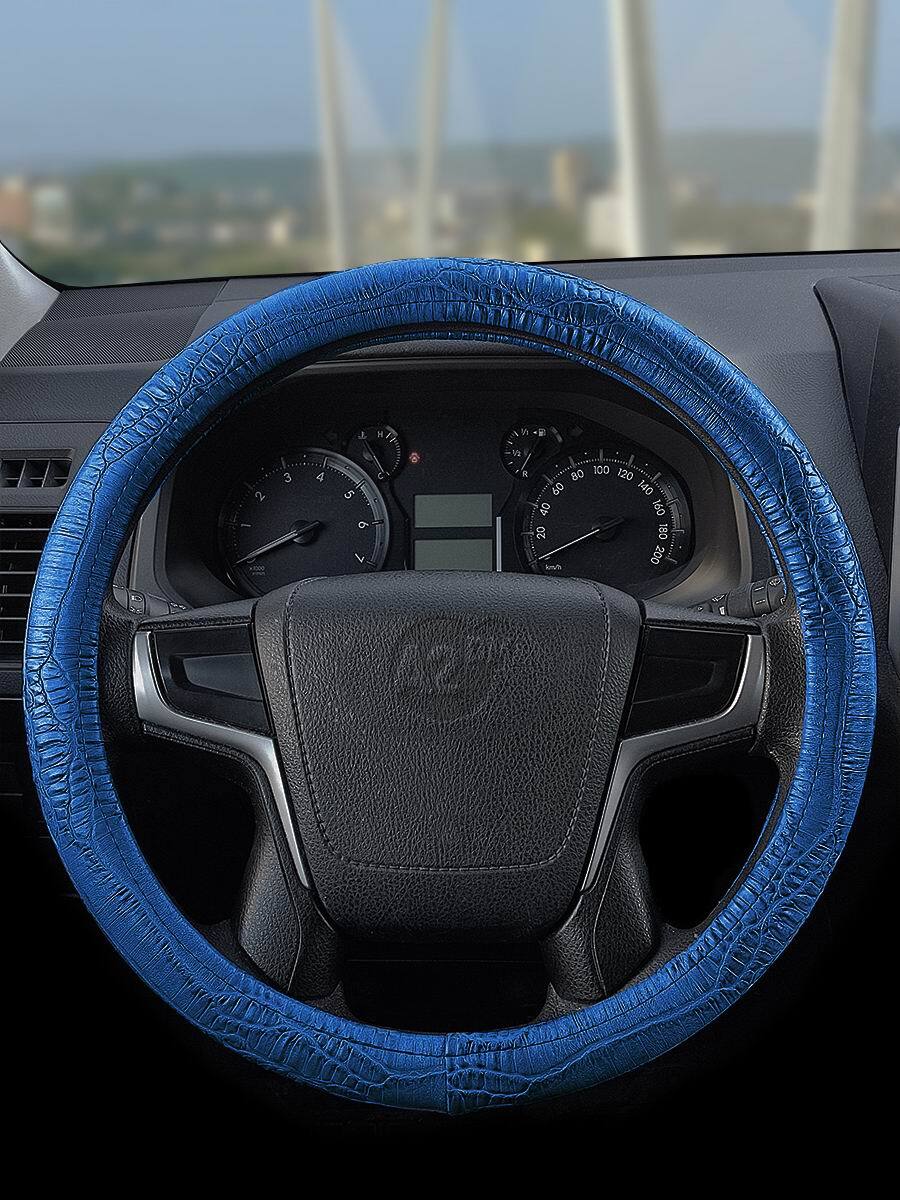 Оплетка экокожа, М размер, серия РЕПТИЛИЯ синий электра