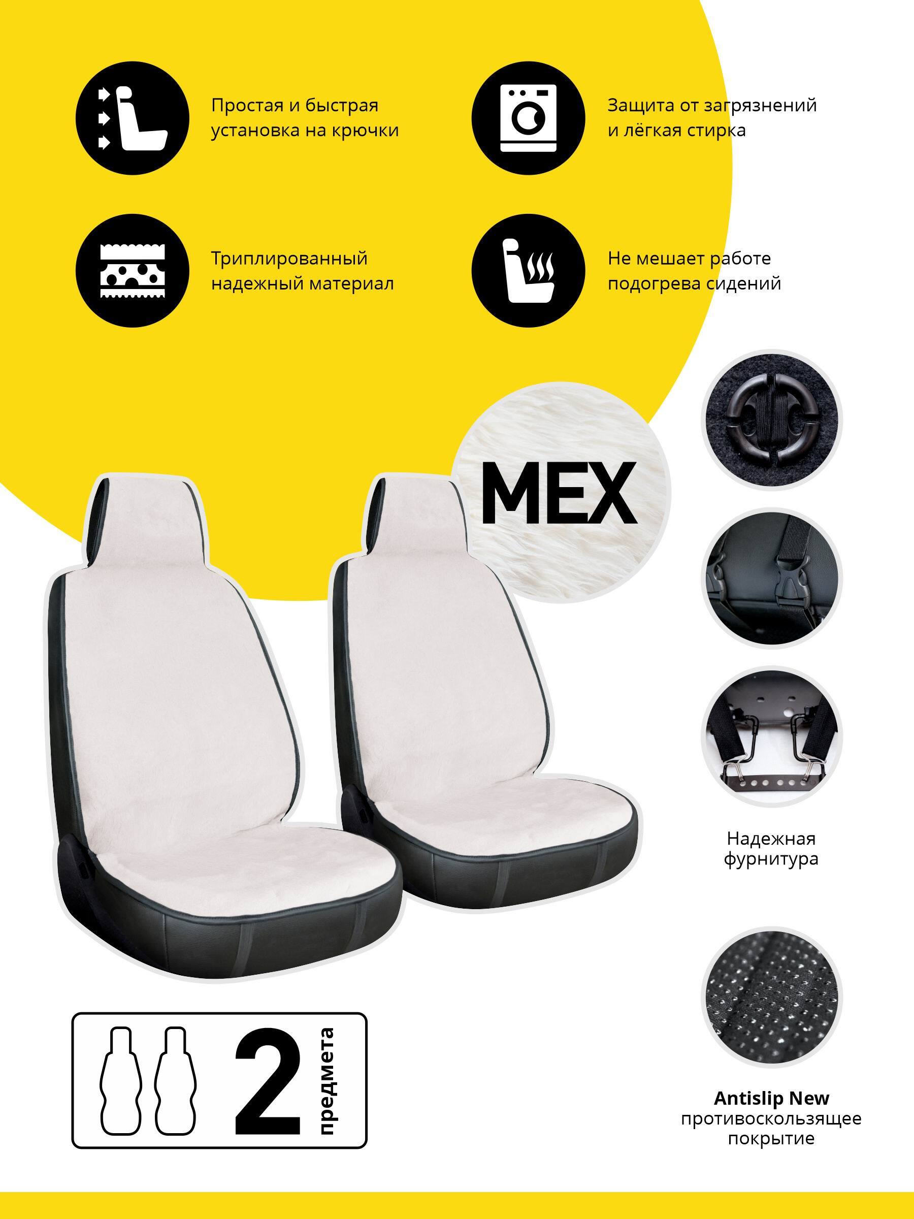 Накидка на сиденье автомобиля / чехлы для автомобильных сидений МЕХОВЫЕ белый (2 шт.)