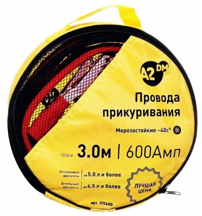 Провода прикуривания A2DM в сумке, морозостойкие, 3 м, 600 А