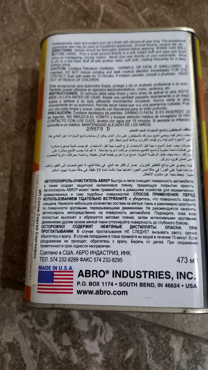 Полироль для фар "ABRO" (237 г) ABRO HR-237