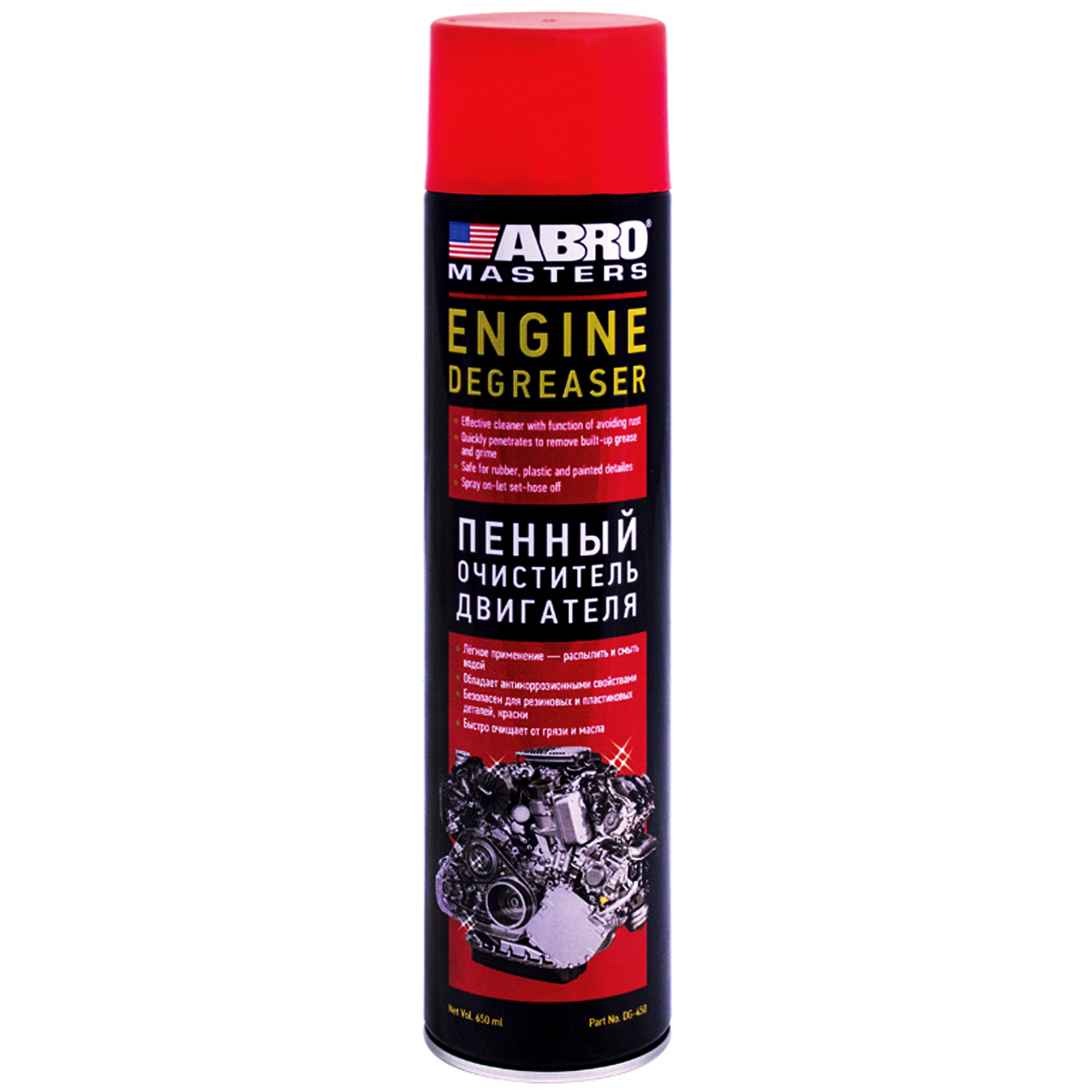 Очиститель двигателя пенный аэрозоль ABRO Masters Чистка двигателя автомобиля 650 мл. DG-450
