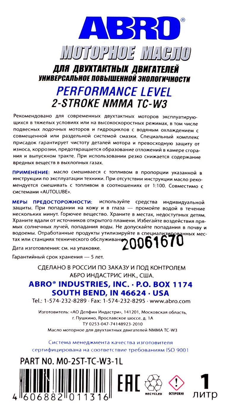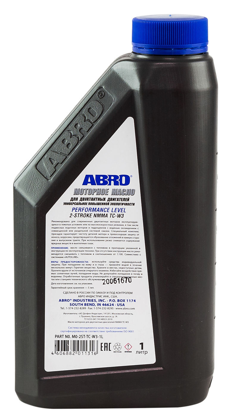 Масло ABRO API TC-W3 Premium 2-х тактное полусинтетика, 1 л, # 00154185