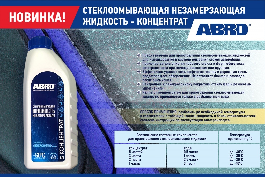 Жидкость стеклоомывателя Abro Концентрат -40°C 1 л
