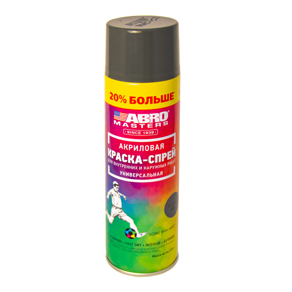 Аэрозольная краска Abro SP-084-L-AM-RE Быстросохнущая, Акриловая, 0.31 кг, серый