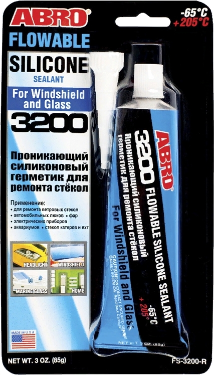 Герметик ABRO для стекол, повышенной текучести, силиконовый, тюбик, 85 гр., США, комплект 2 шт