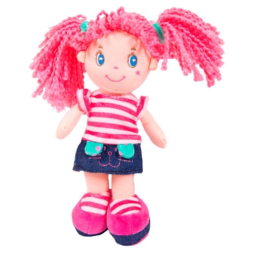 Мягкая игрушка ABtoys Кукла с розовыми волосами в джинсовой юбочке 20 см