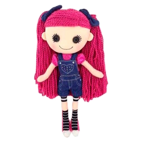 Мягкая игрушка ABtoys Кукла джинсовая с малиновыми волосами в комбинезоне 25 см