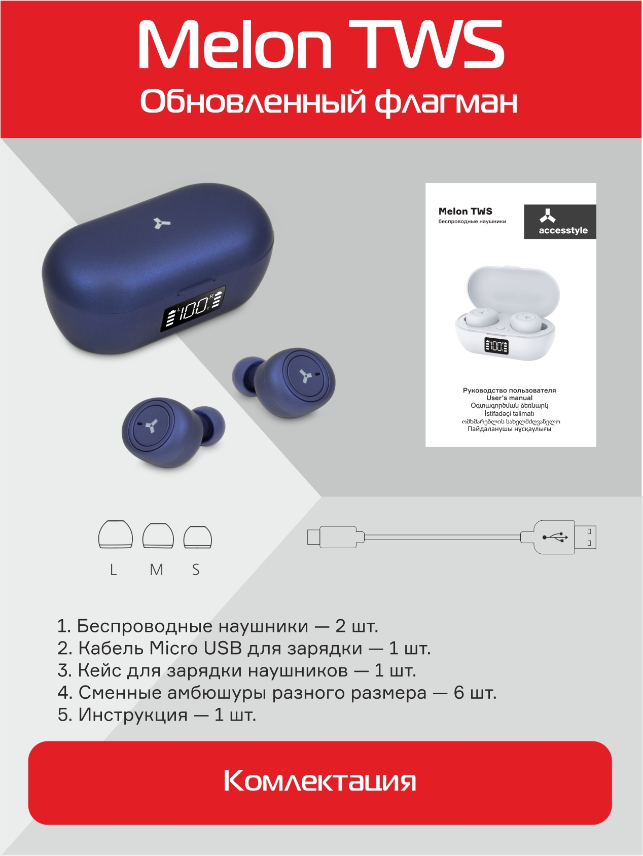 Беспроводные наушники AccesStyle Melon TWS, белый. Уцененный товар
