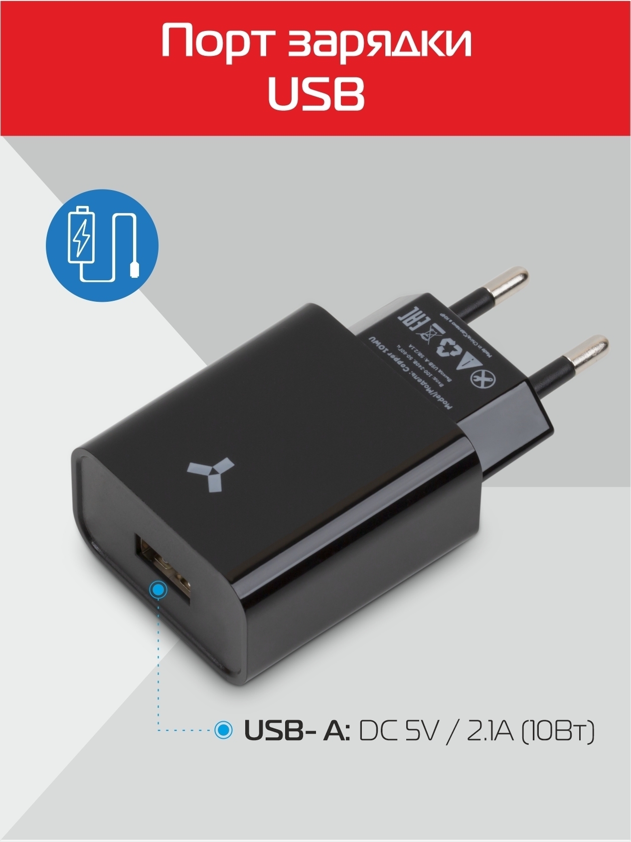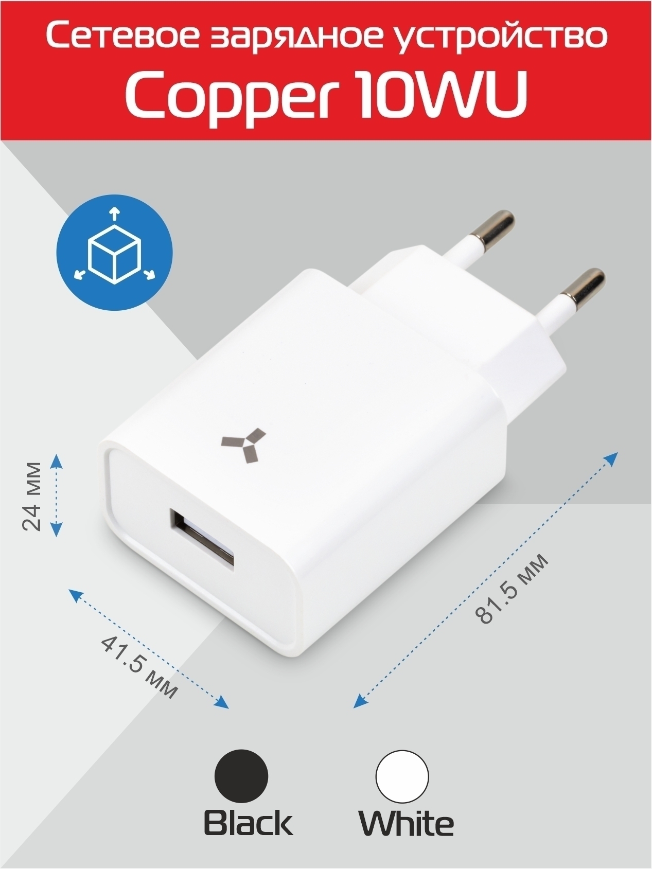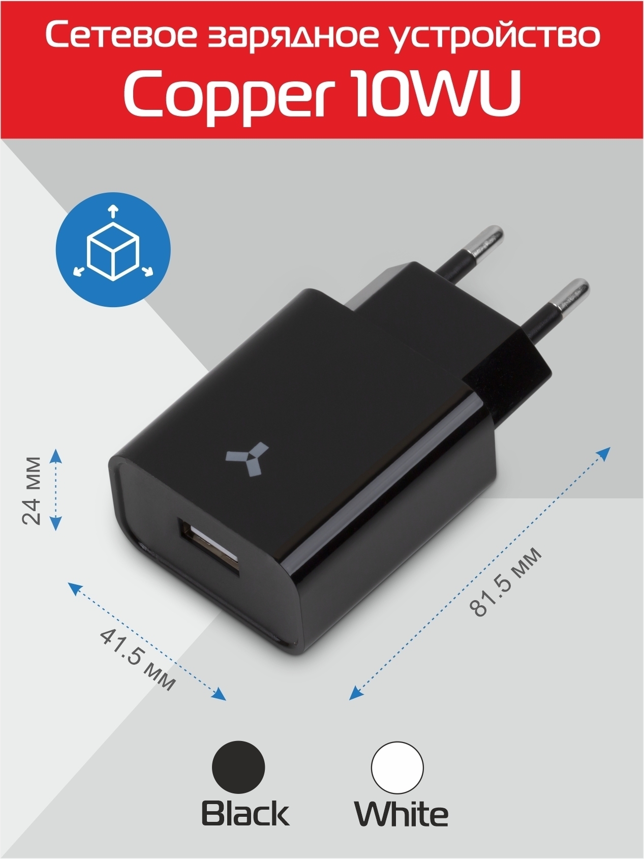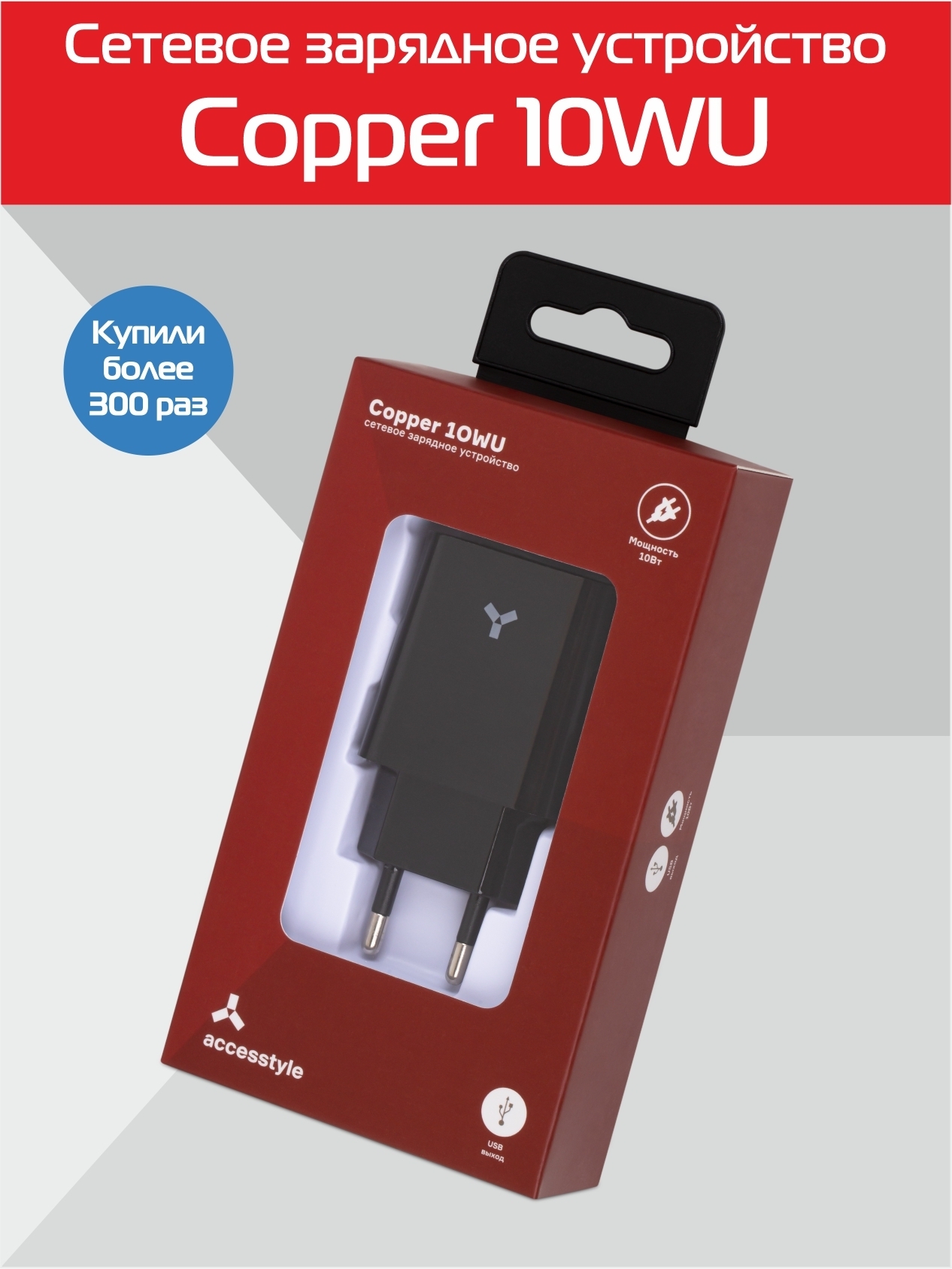 Сетевое зарядное устройство Accesstyle Copper 10WU черное /Адаптер/Зарядка/iPhone/iPad/USB/айфон