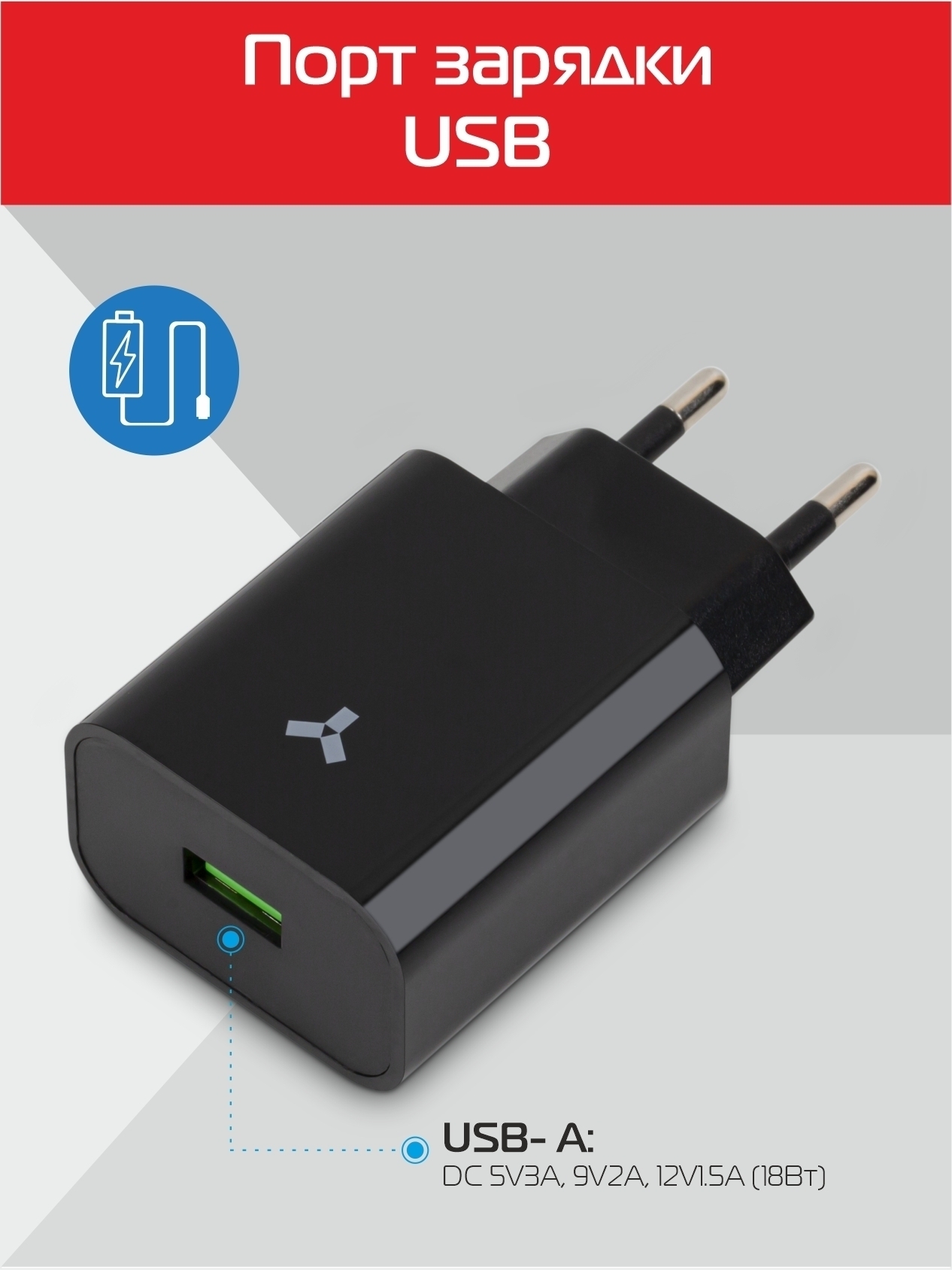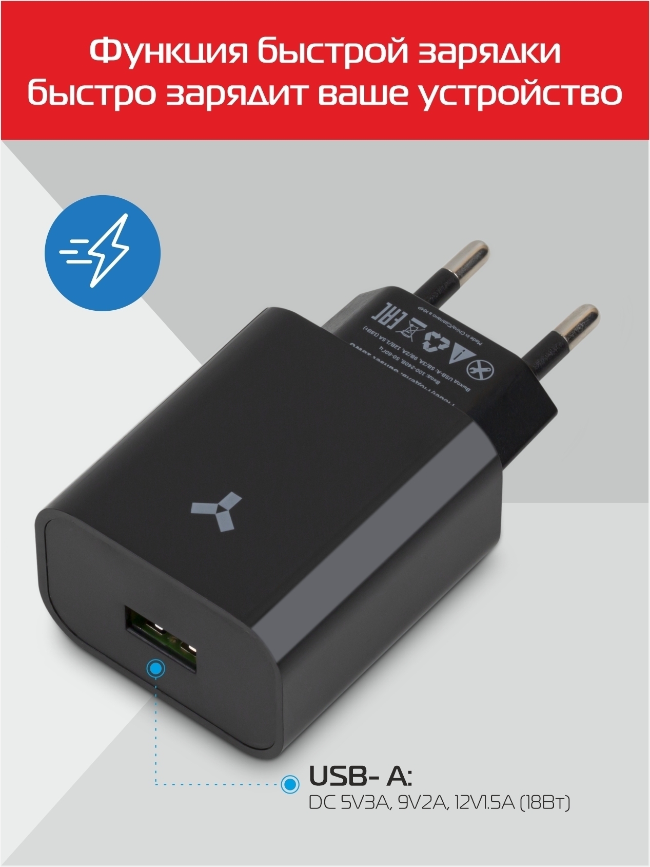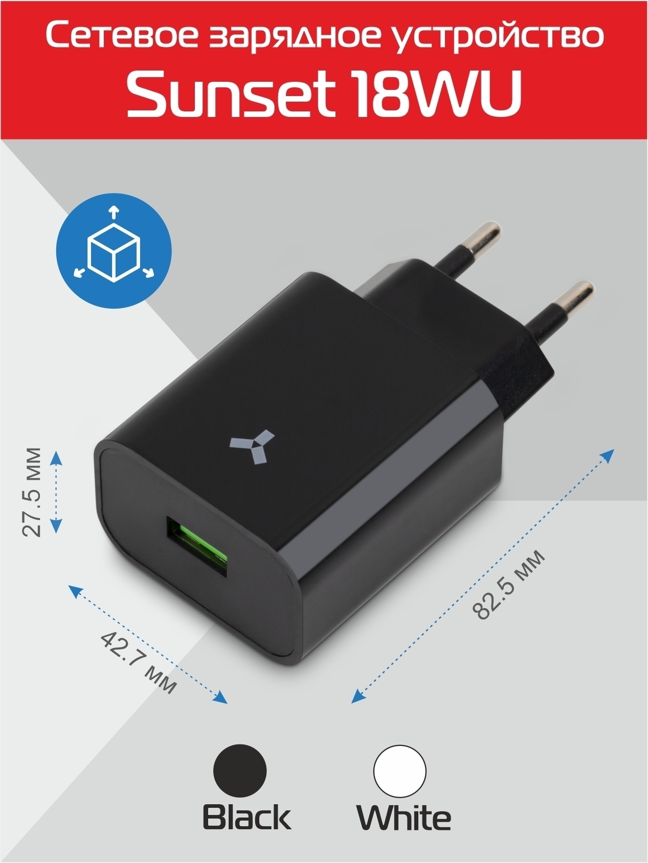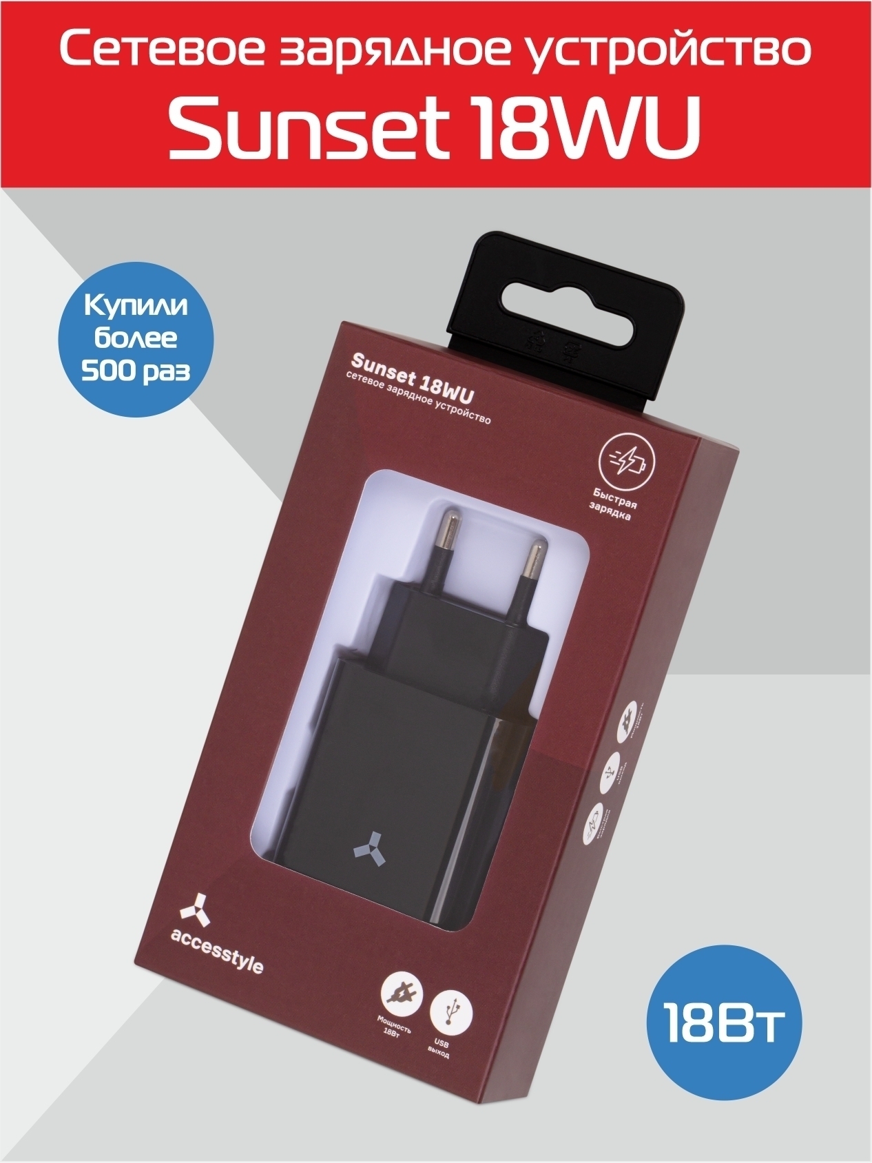 Сетевое зарядное устройство Accesstyle Sunset 18WU черное/Адаптер/Зарядка/iPhone/iPad/USB