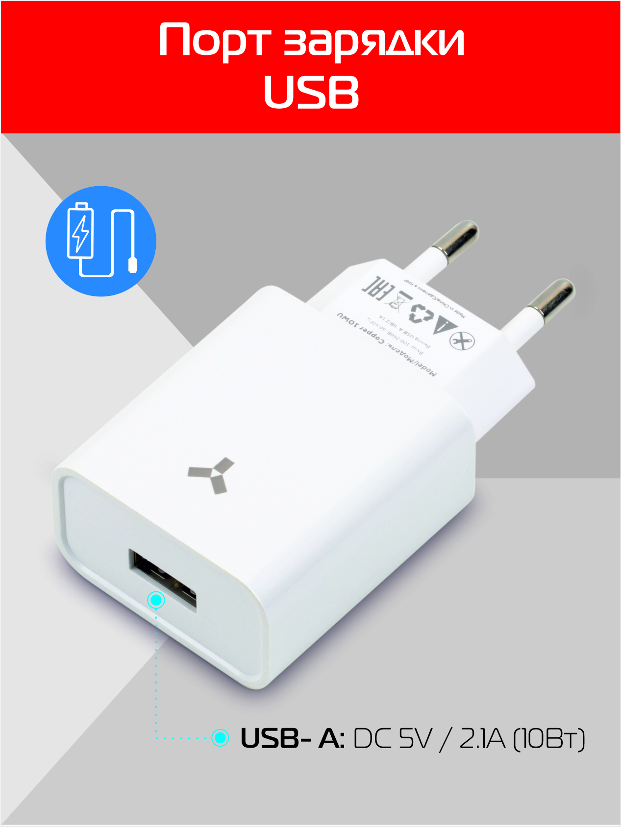 Сетевое зарядное устройство Accesstyle Copper 10WU белое/Адаптер/Зарядка/iPhone/iPad/USB/айфон