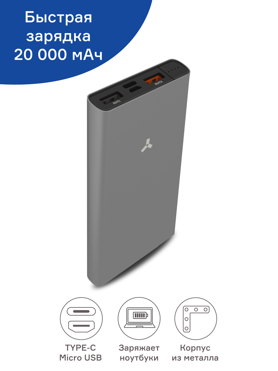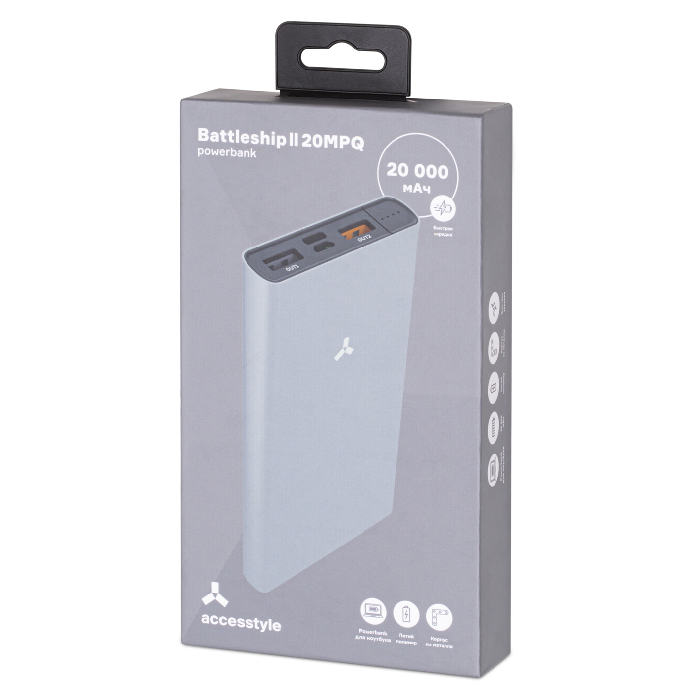 Внешний аккумулятор AccesStyle Power Bank Battleship II 20MPQ, 20 000 мА•ч, быстрая зарядка, серый