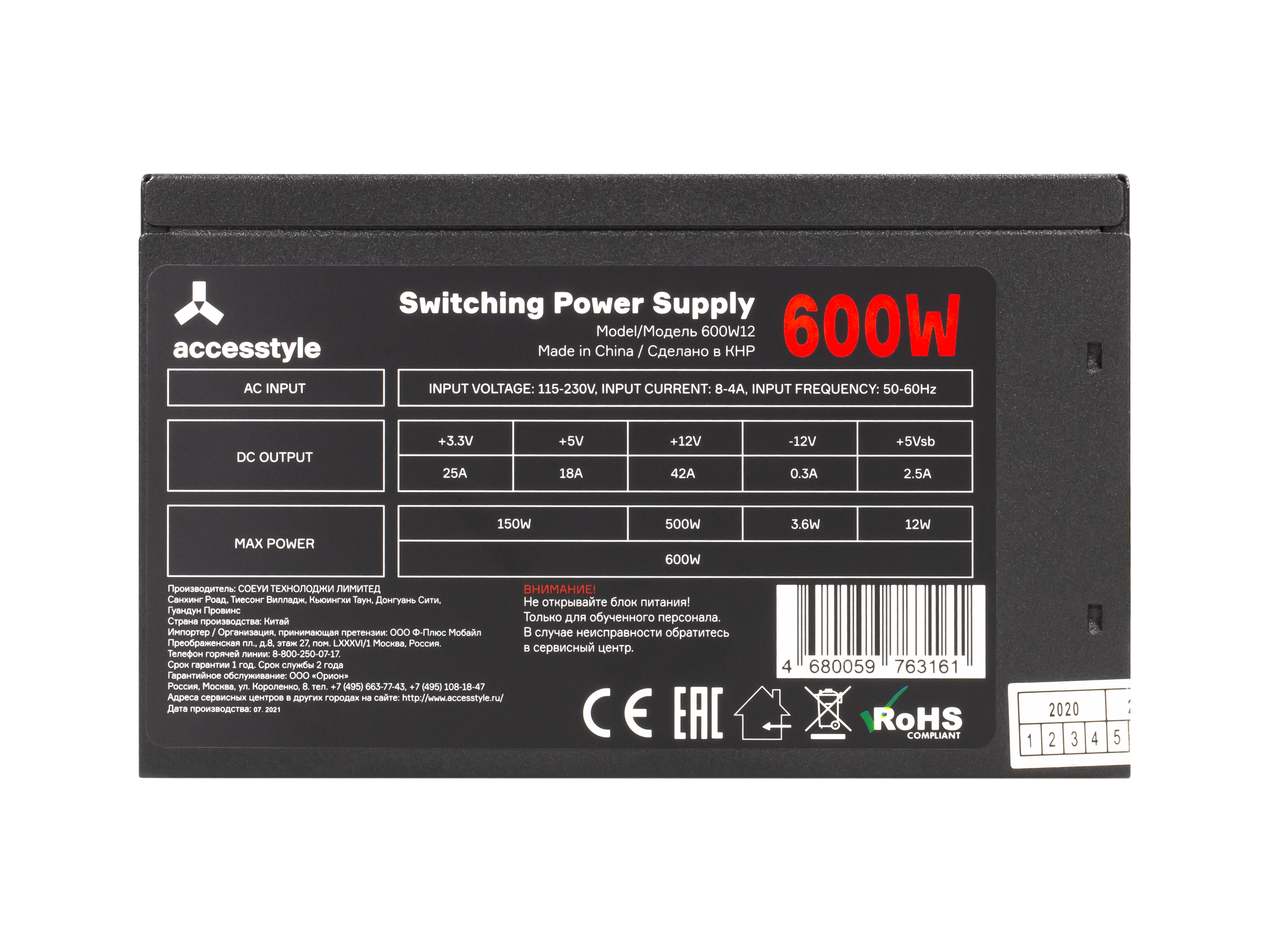Блок питания Accesstyle 600W12 600 Вт ATX/600W / ATX