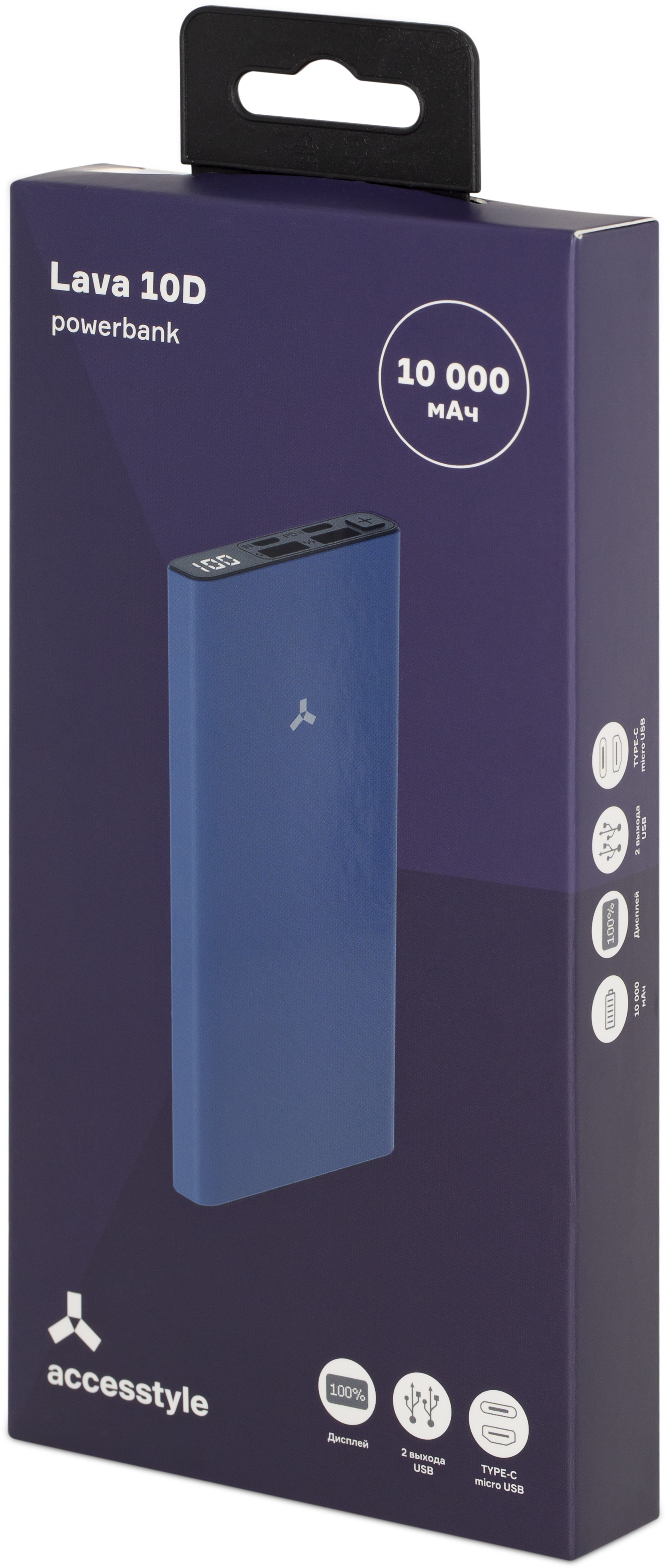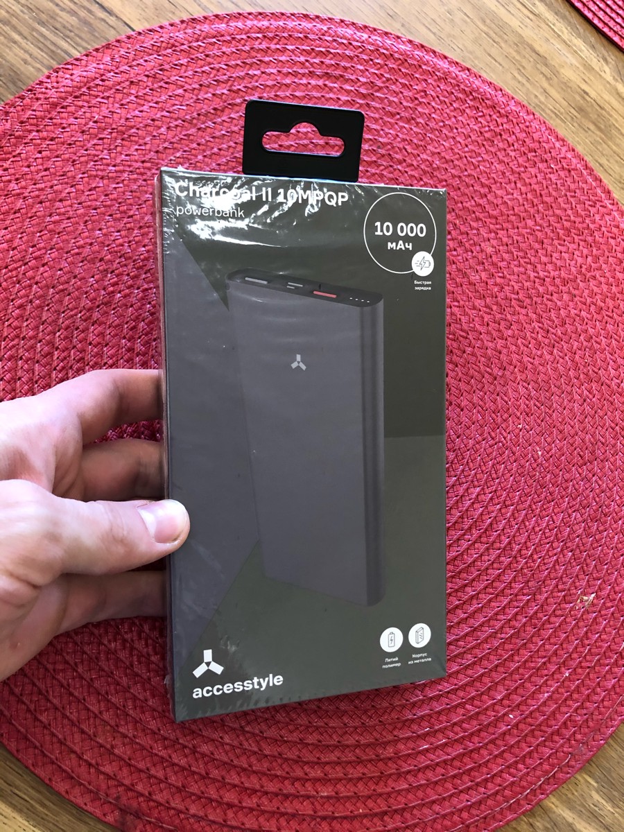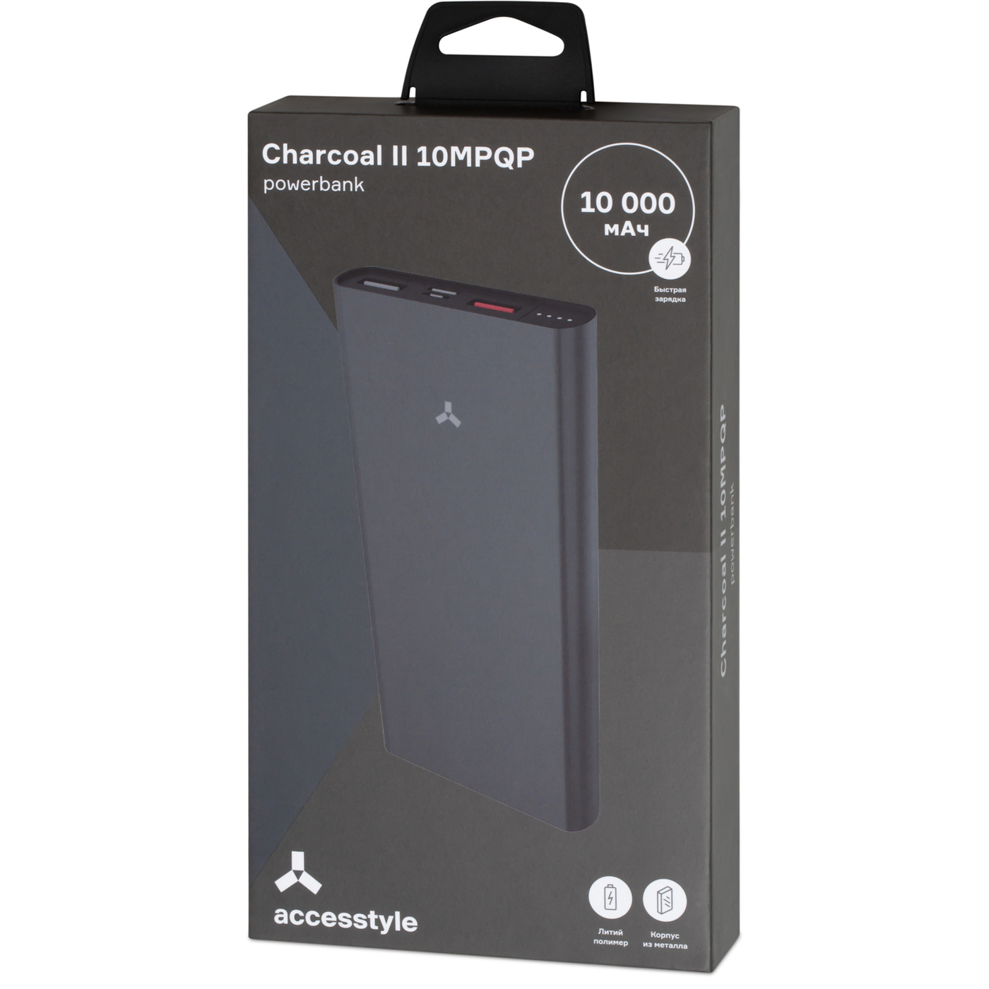 Внешний аккумулятор AccesStyle Power Bank Charcoal II 10MPQP, 10 000 мА•ч, быстрая зарядка, серый
