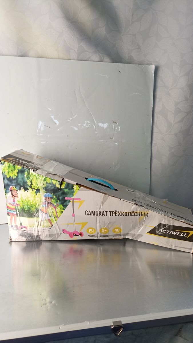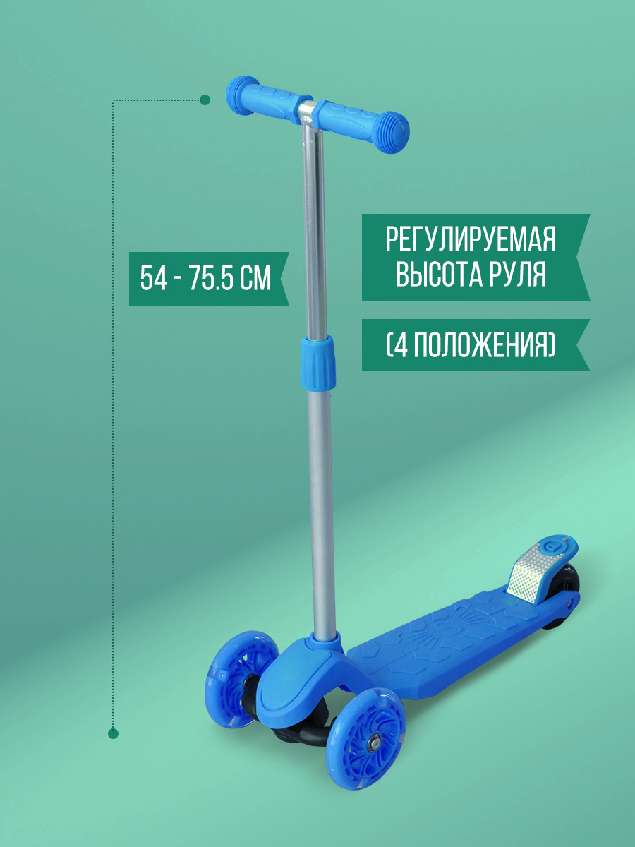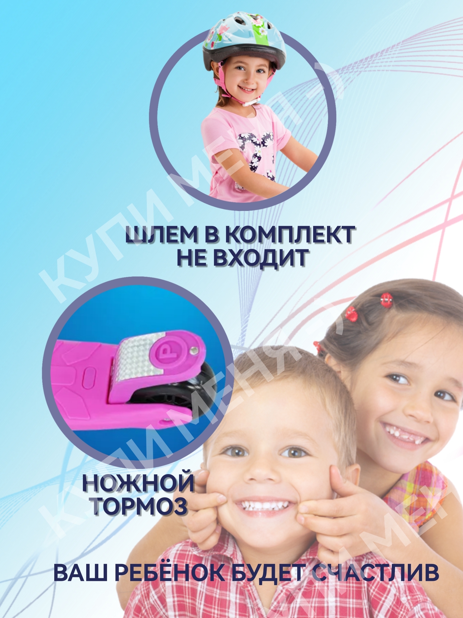 Самокат actiwell розовый с регулировкой руля и ножным тормозом, голубой мм