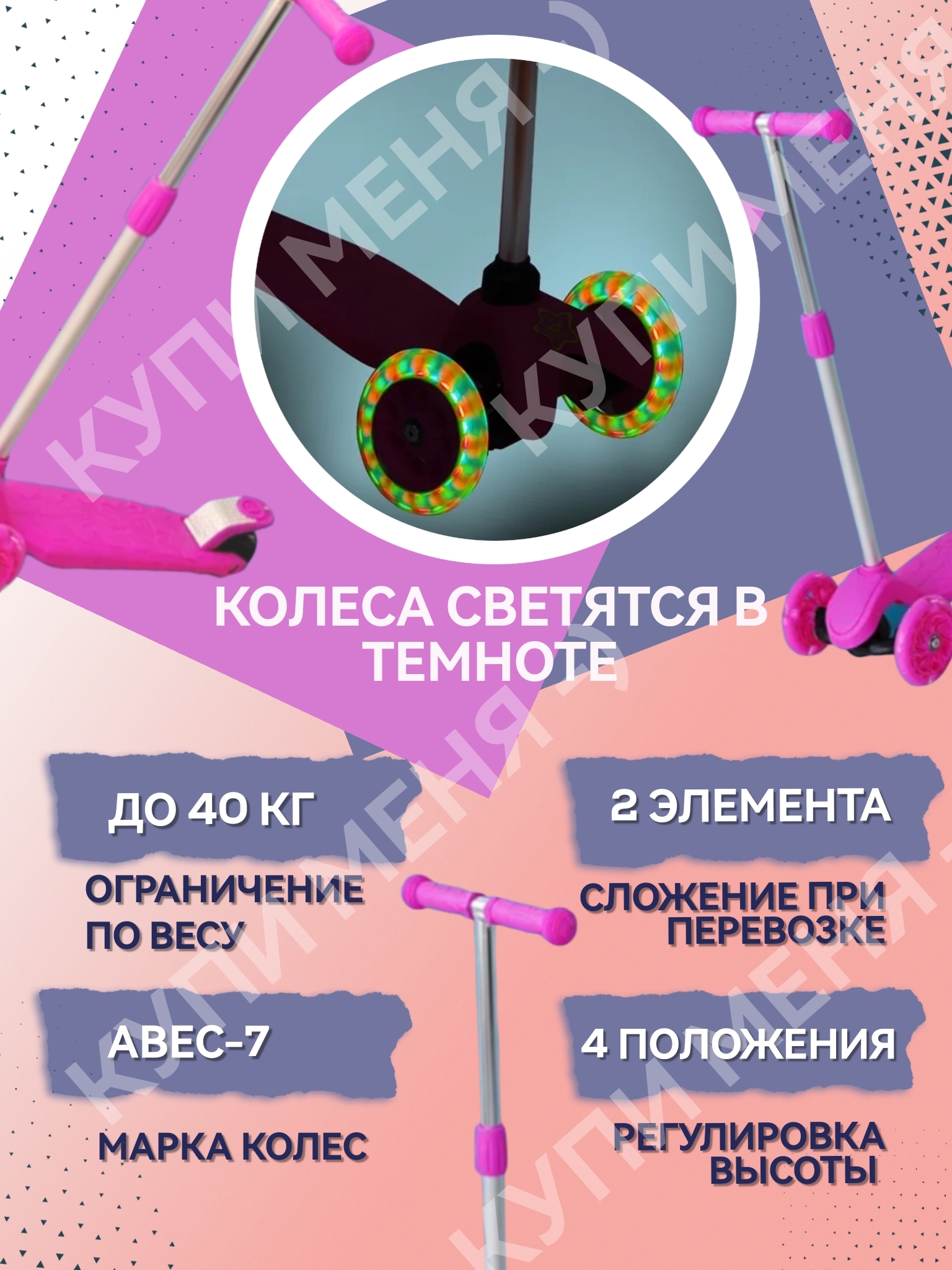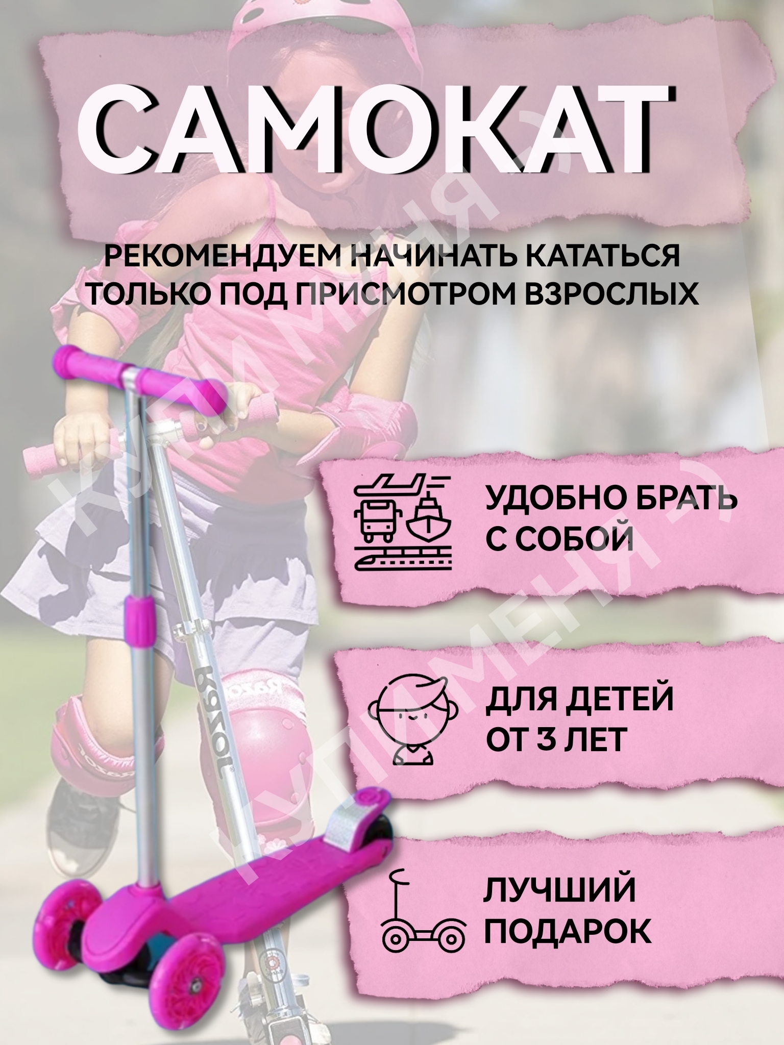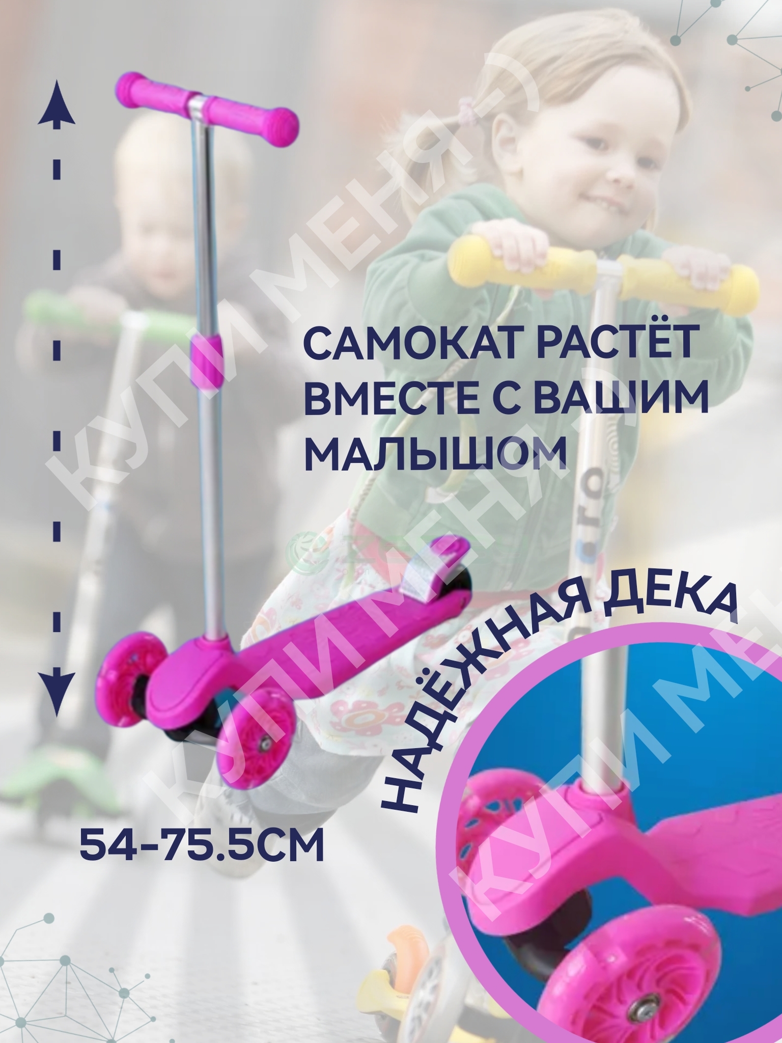 Самокат actiwell розовый с регулировкой руля и ножным тормозом, розовый мм