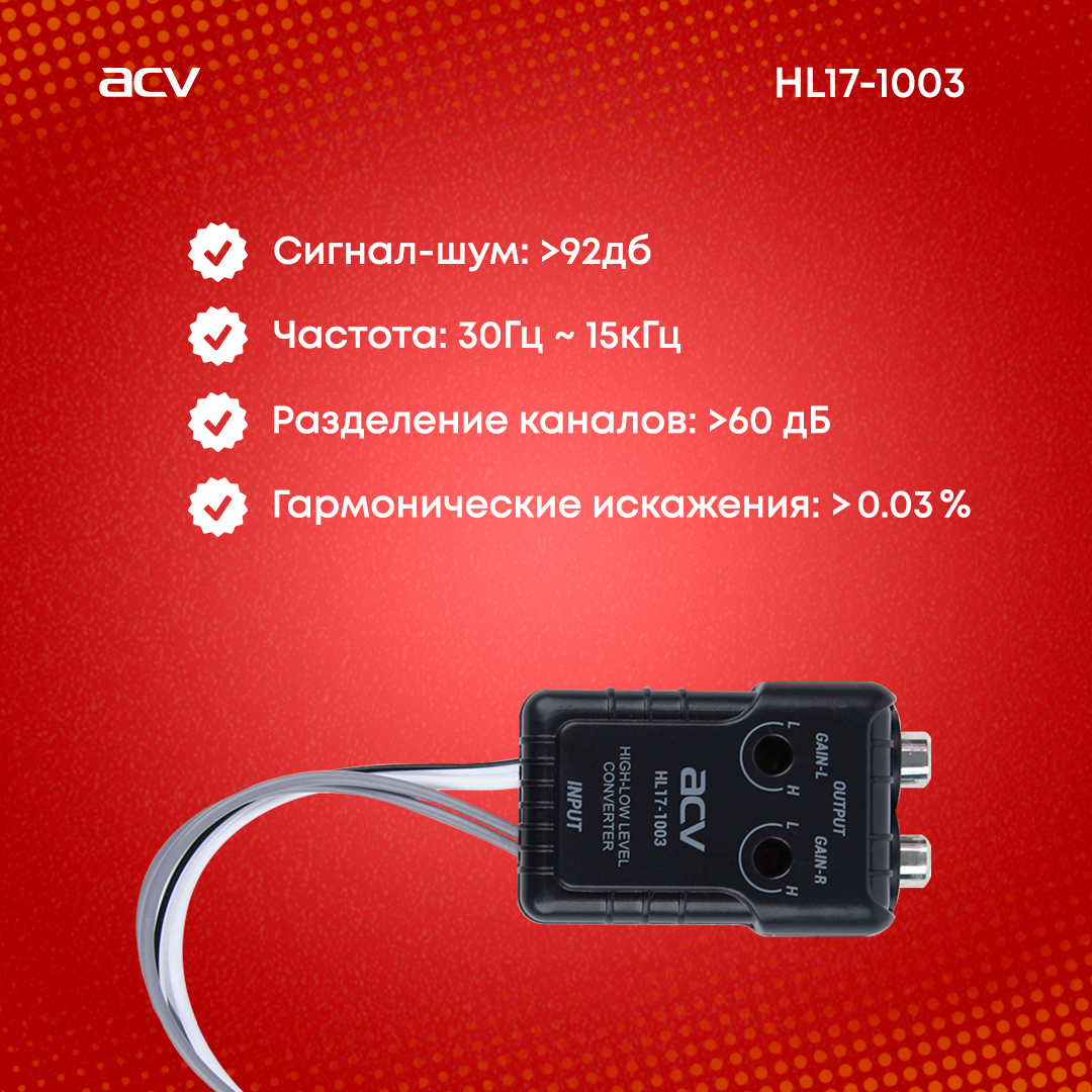 Адаптер с высокой частоты в линию ACV HL17-1003 / 2-х канальный преобразователь аудиосигнала