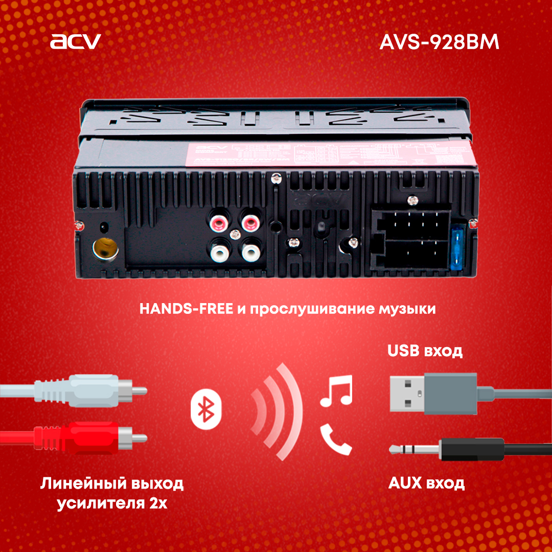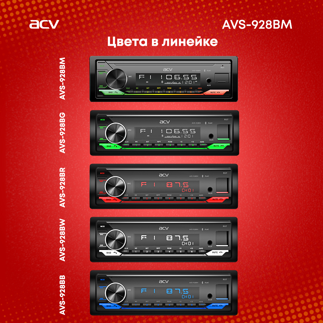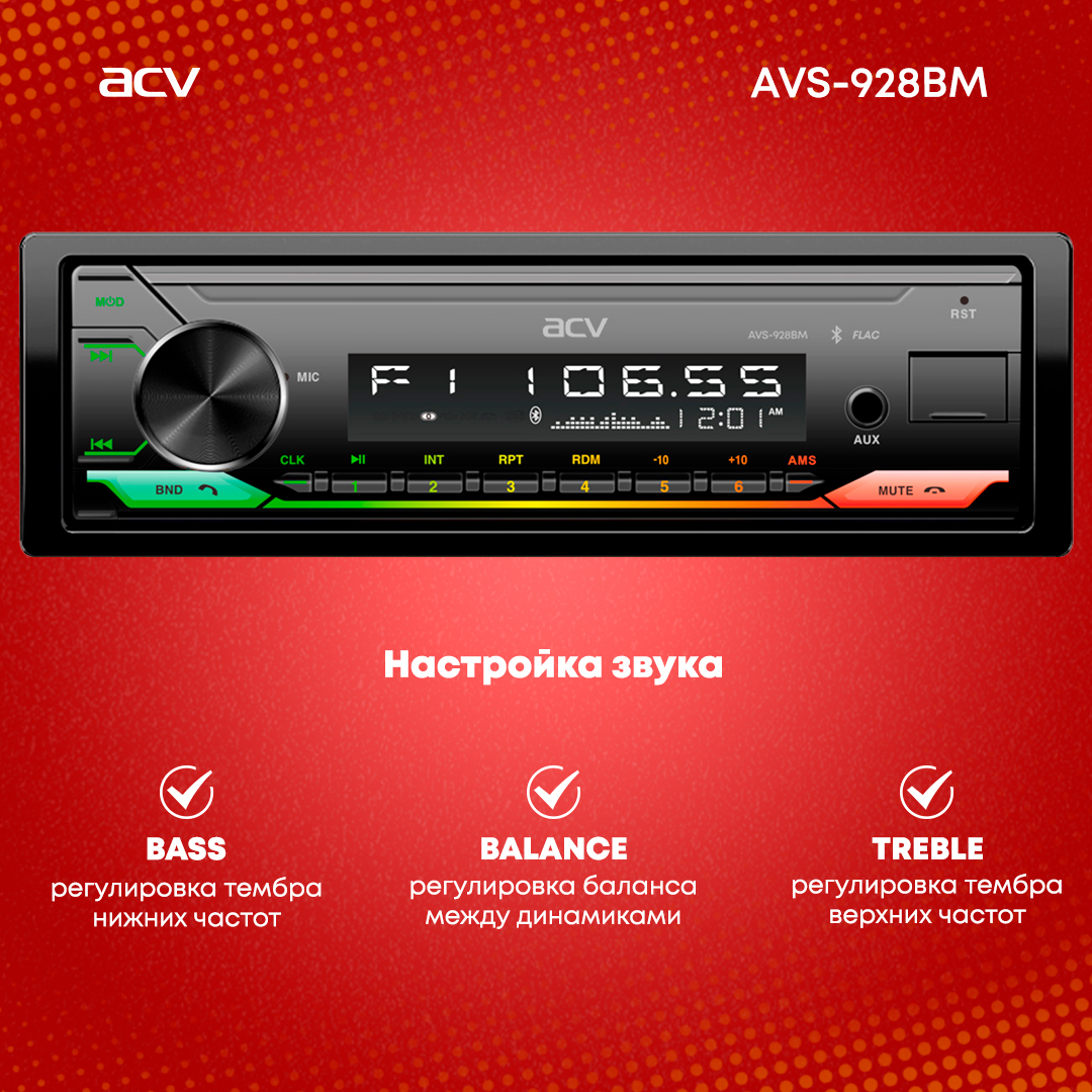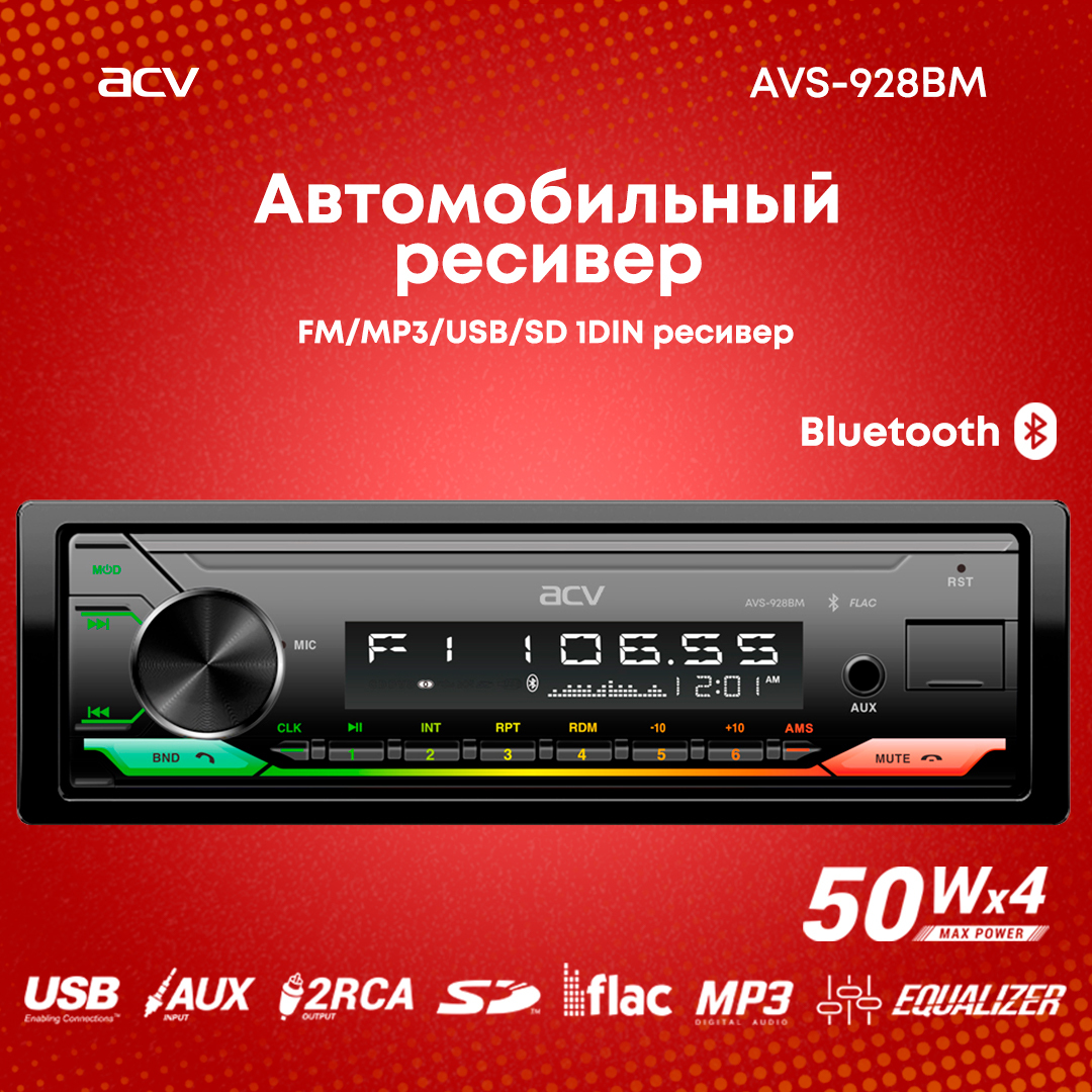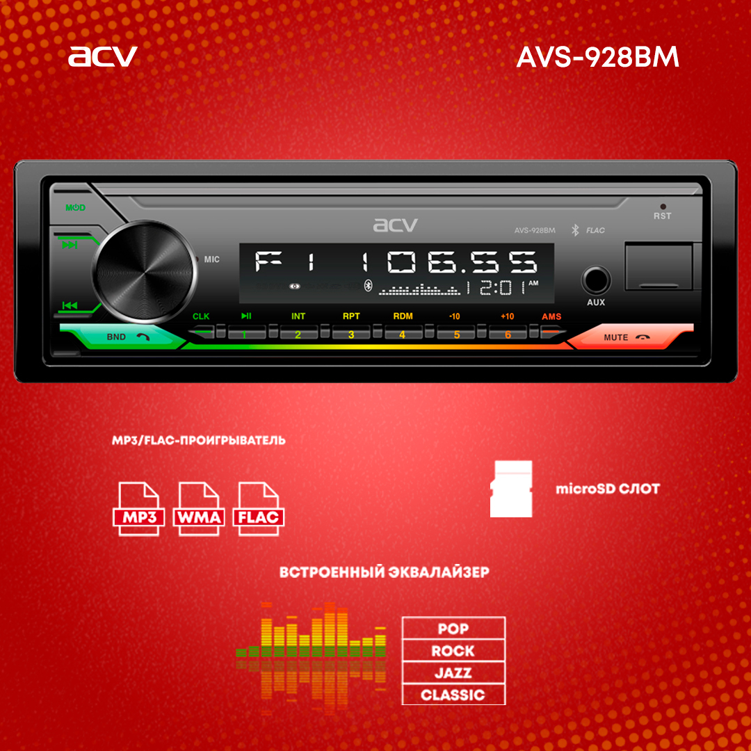 Автомагнитола ACV AVS-928BM/ Магнитола для авто / Автомобильная магнитола / Магнитола 1 din