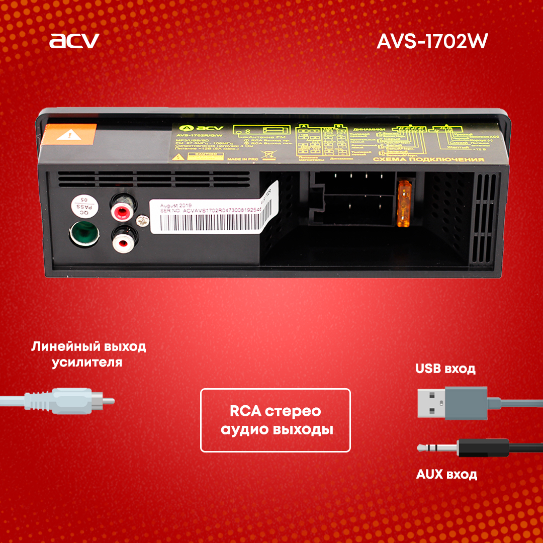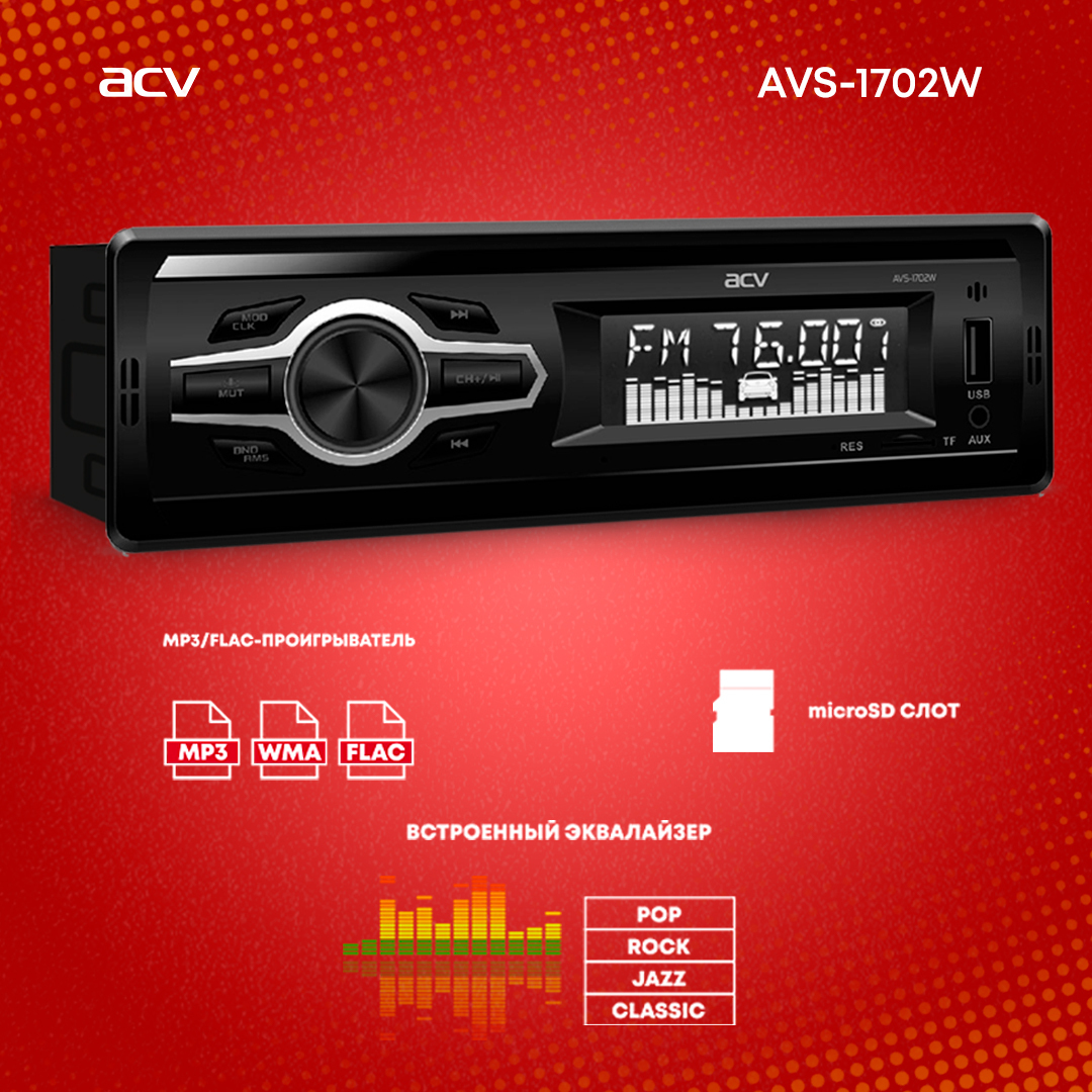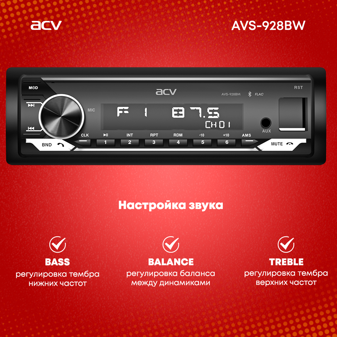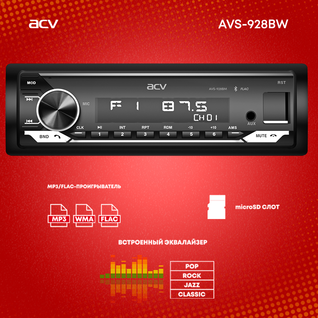 Автомагнитола ACV AVS-928BW/ Магнитола для авто / Автомобильная магнитола / Магнитола 1 din