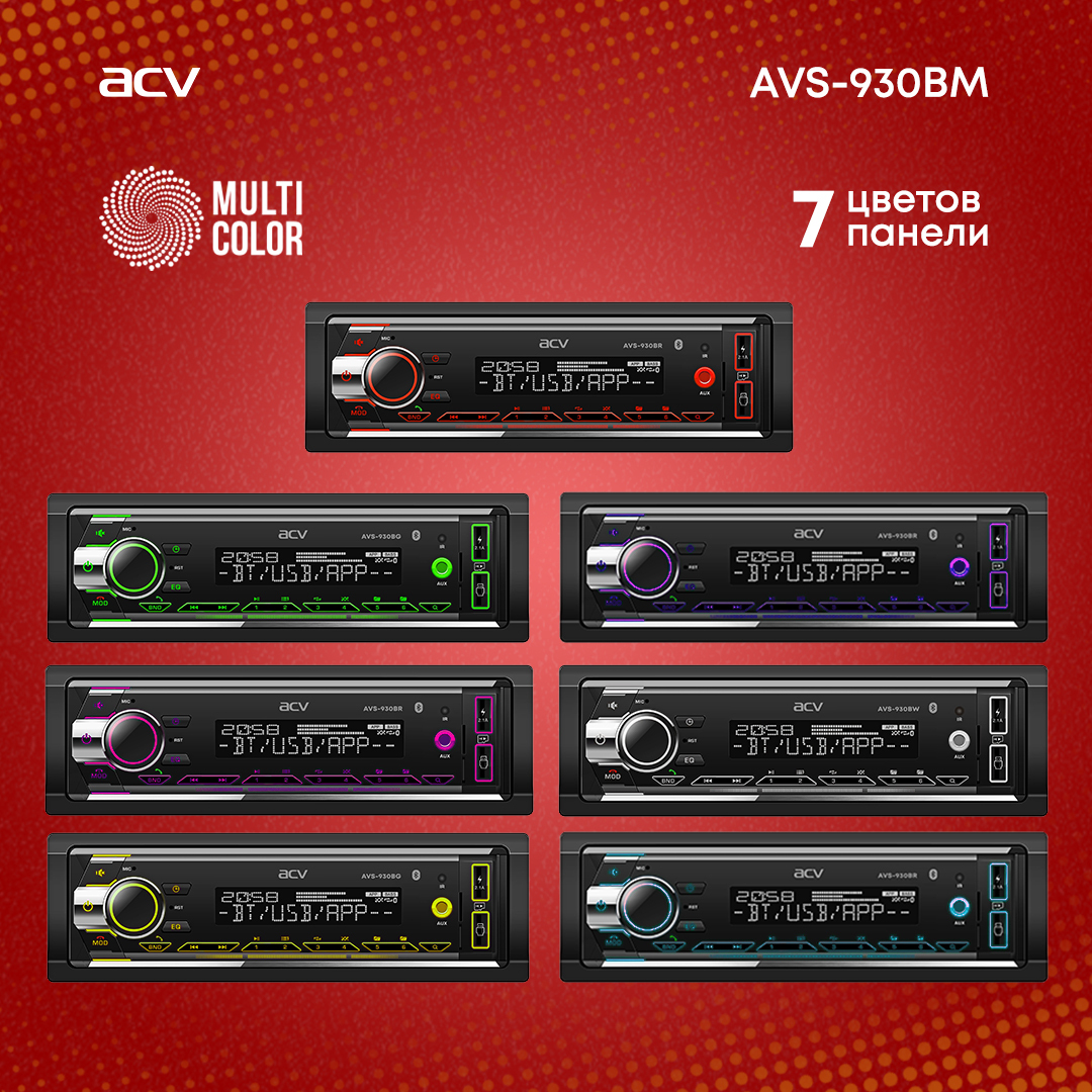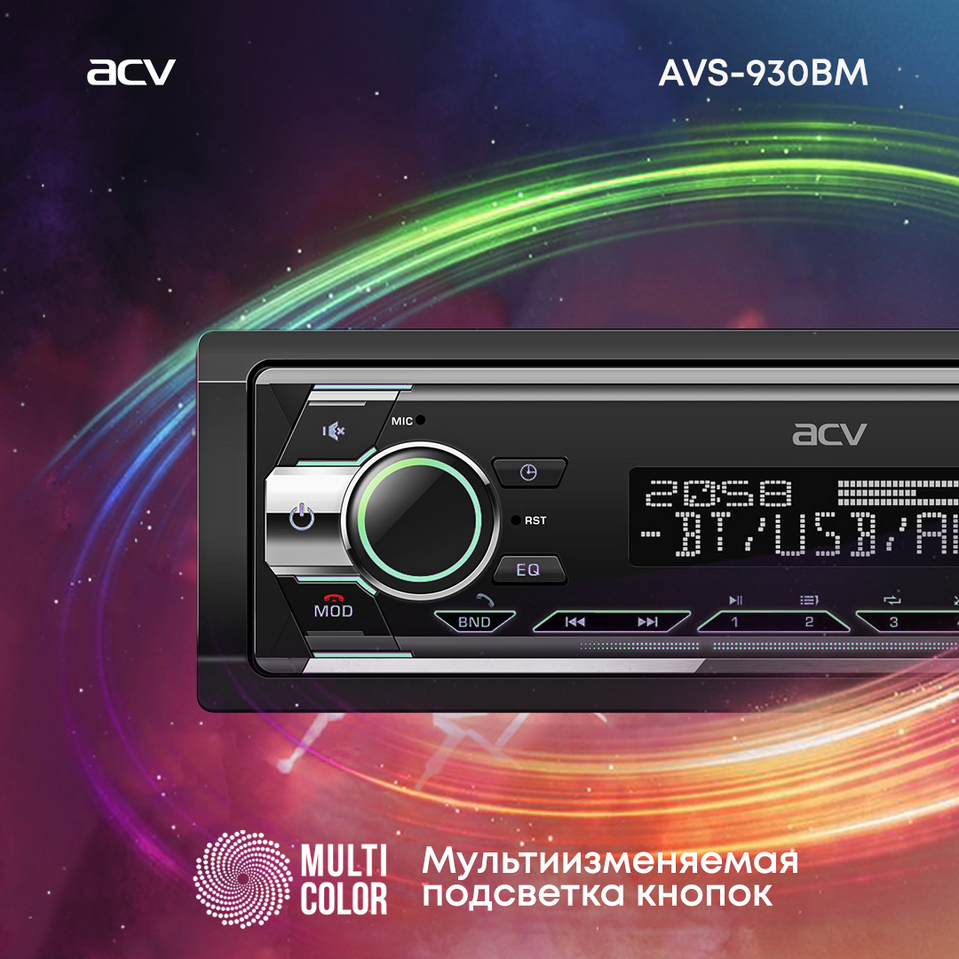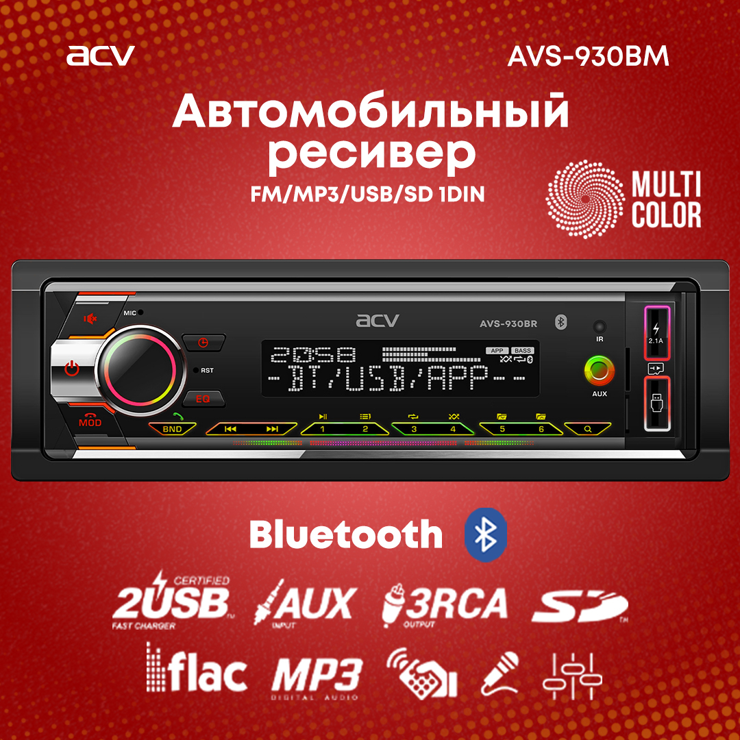 Автомагнитола ACV AVS-930BM, 2USB/ Магнитола в авто / Автомобильная магнитола / Магнитола 1 din