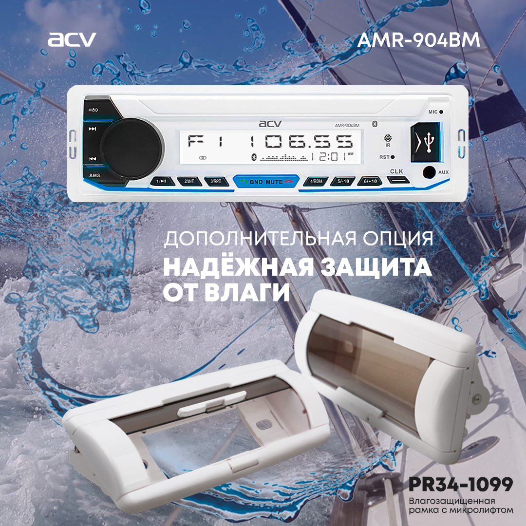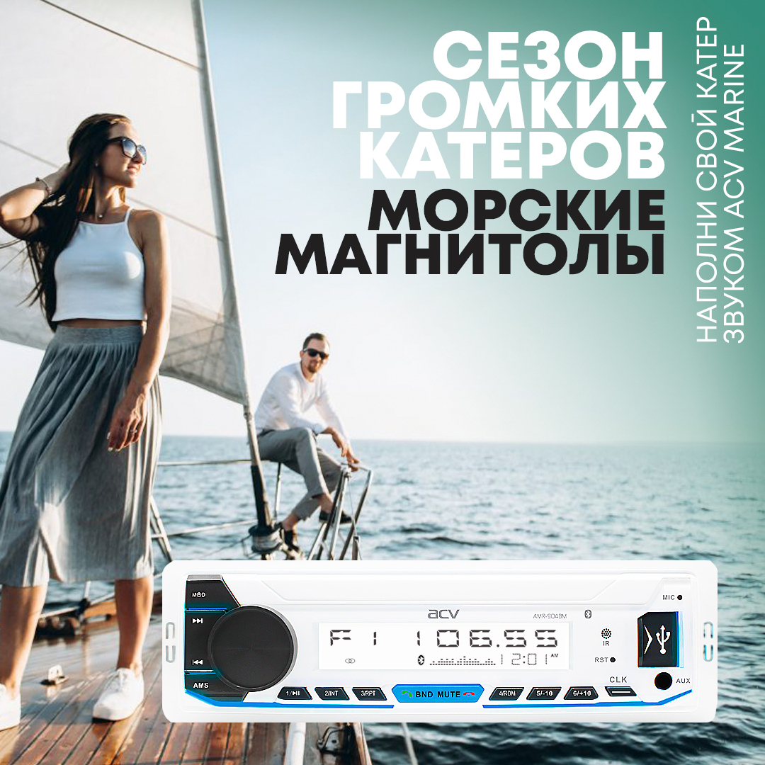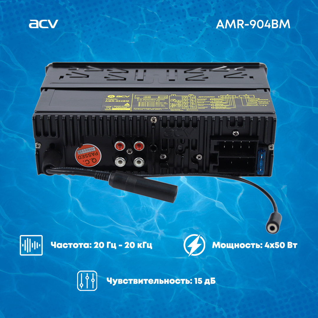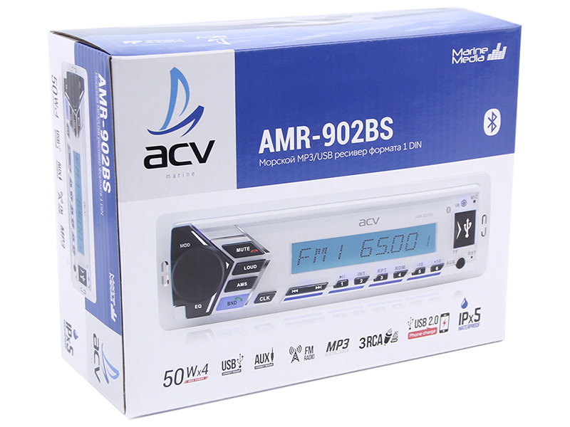 Магнитола для катера/яхты ACV AMR-902BS, морская серия, 3RCA, подсветка мультицвет