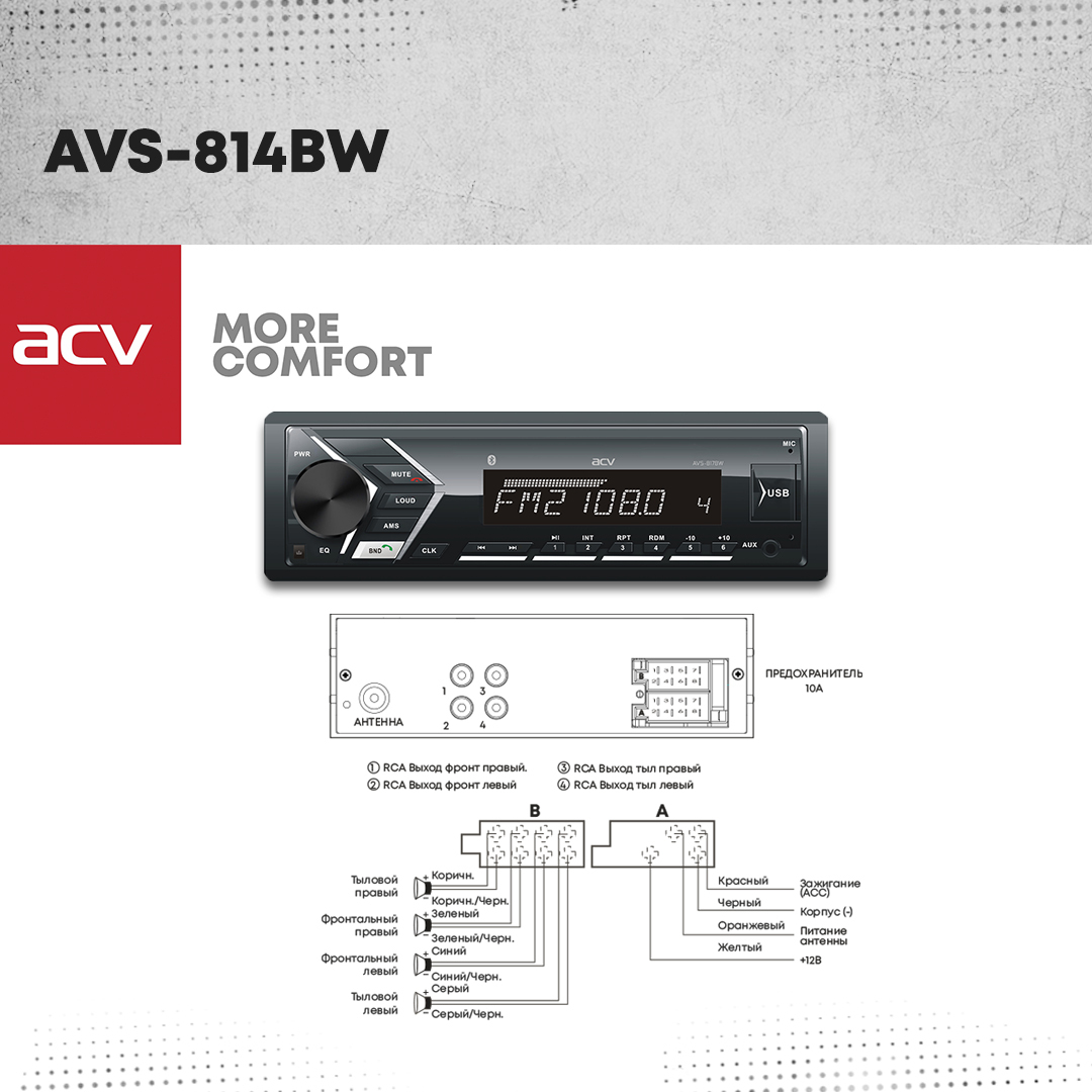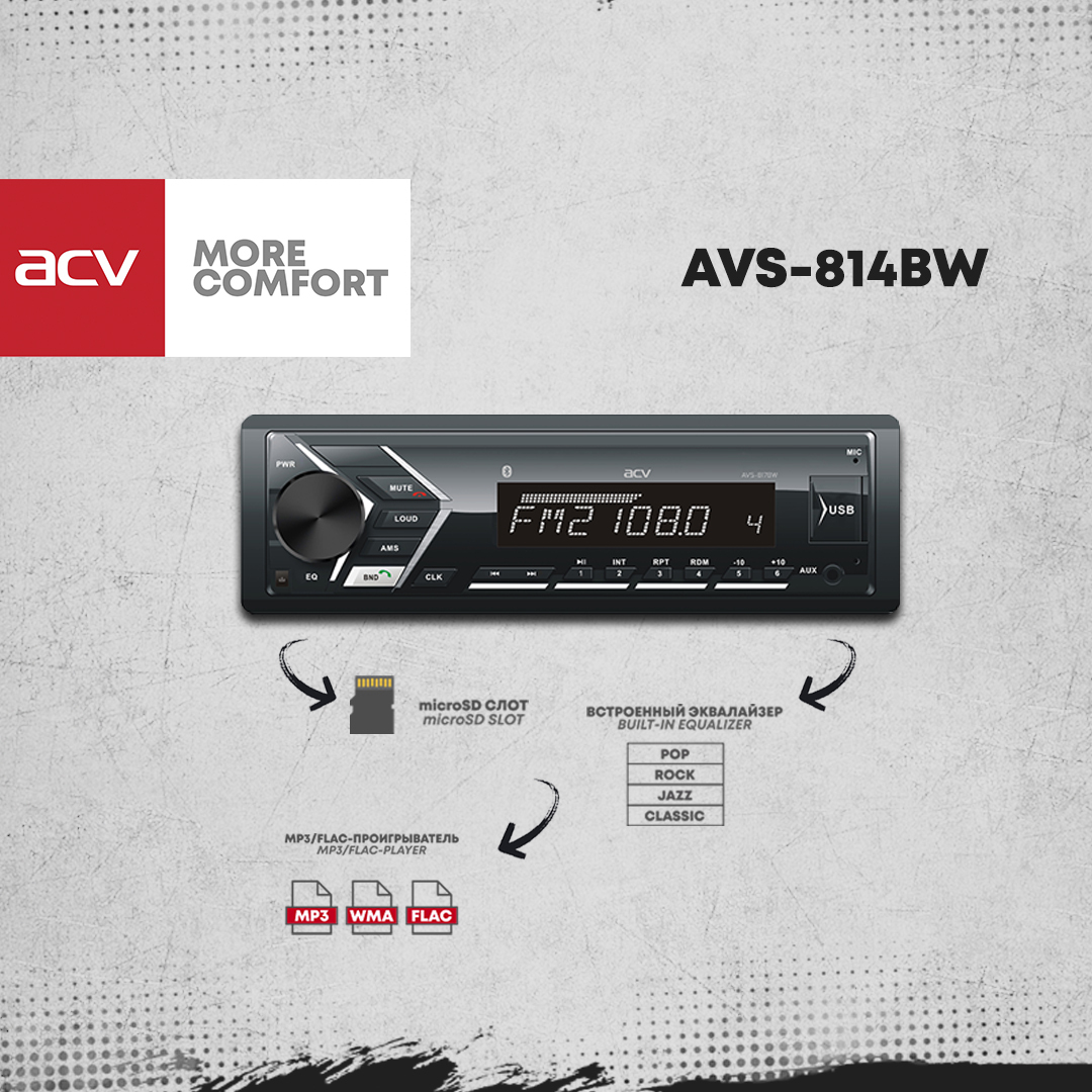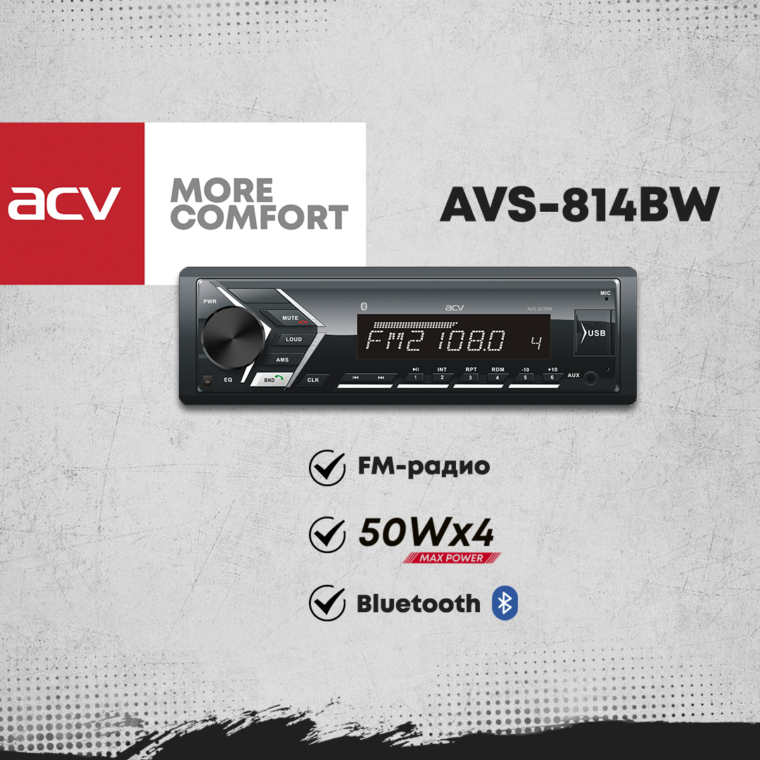 Автомагнитола ACV AVS-814BW, Bluetooth/приложение ACV RC и ACV Control/белая подсветка