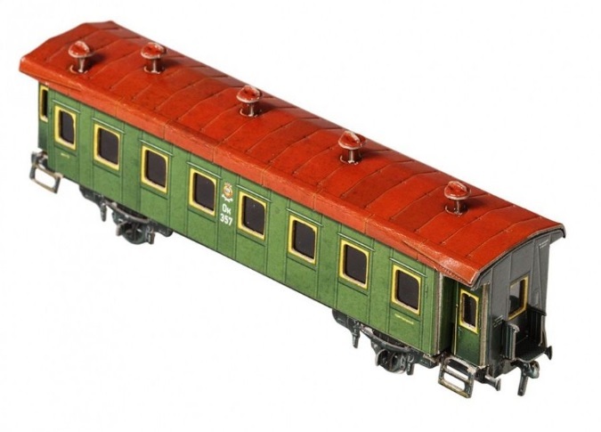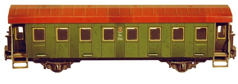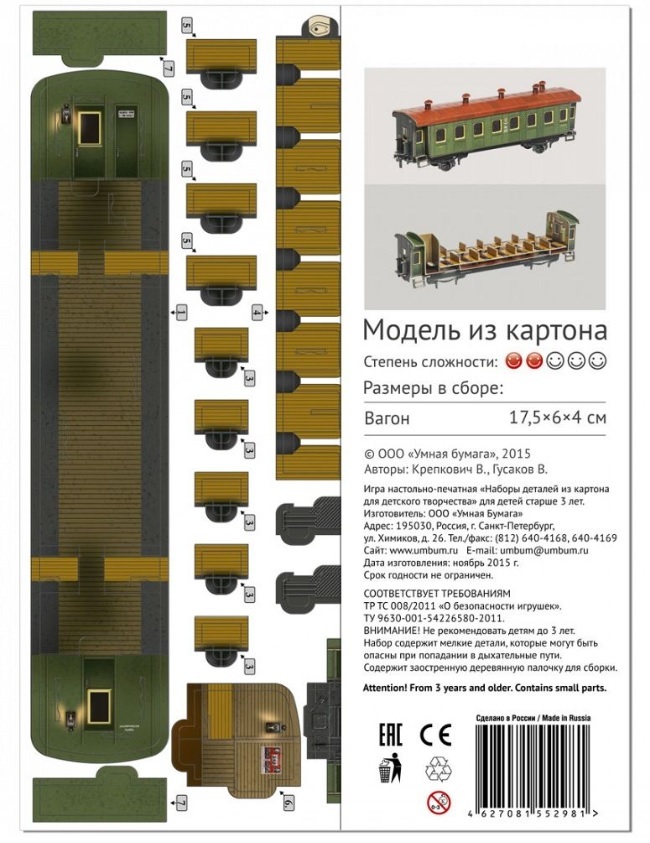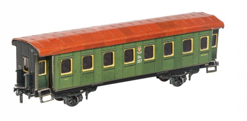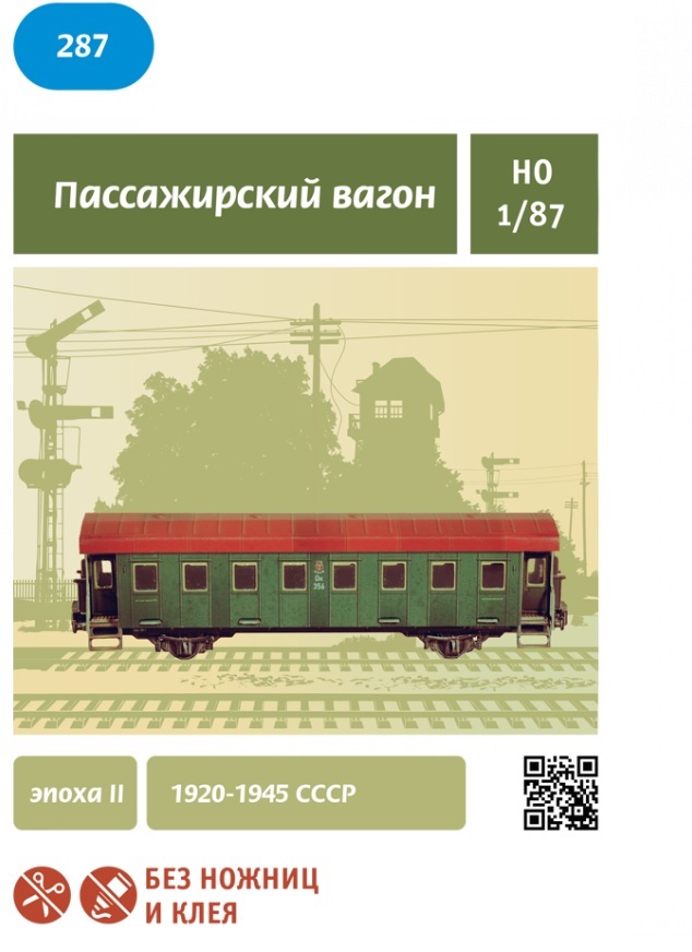 Сборная модель из картона Пассажирский вагон №287 зеленый