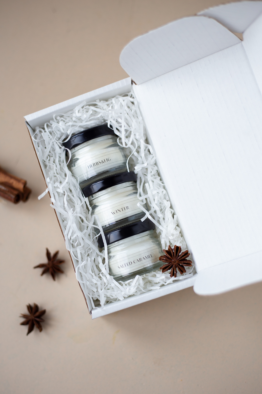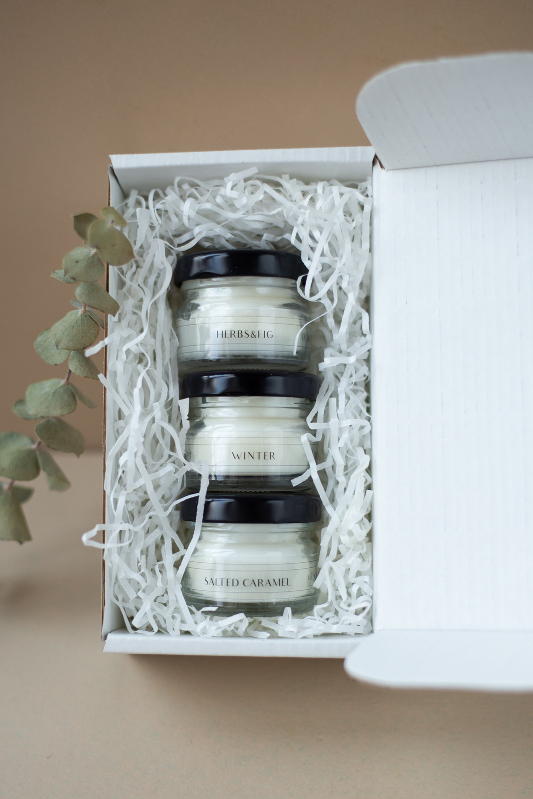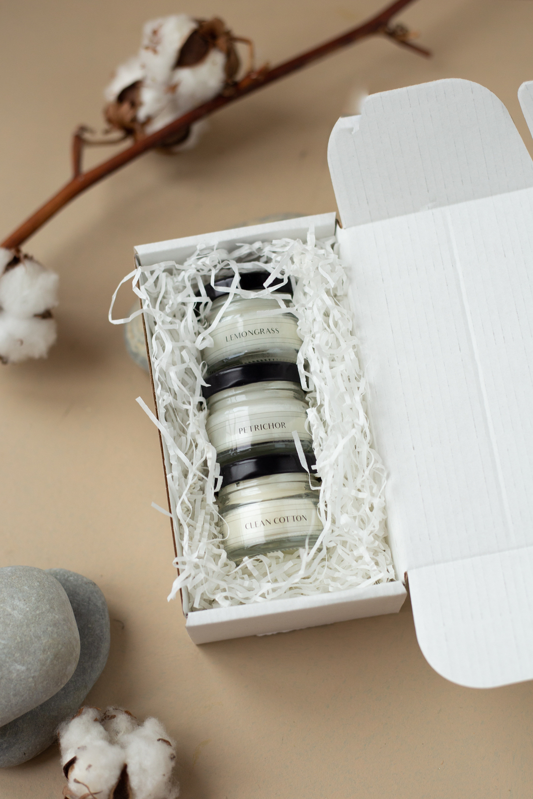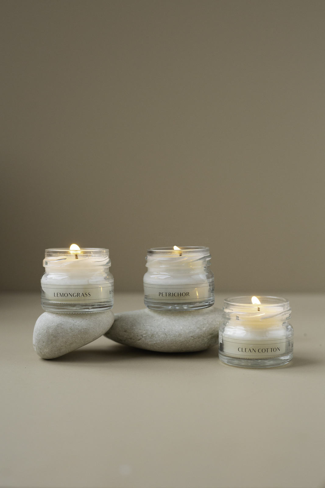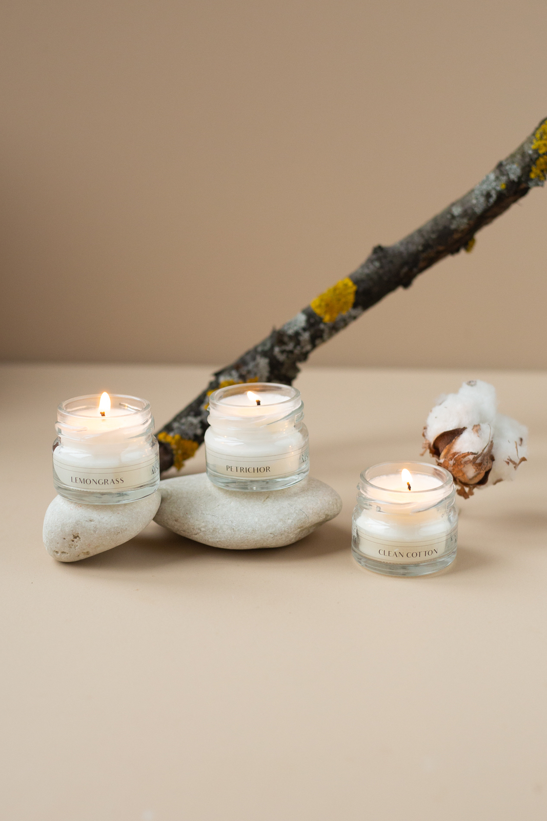 Набор ароматических свечей AESTHETE home "ЧИСТЫЙ ХЛОПОК / ЗАПАХ ДОЖДЯ / ЛЕМОНГРАСС", 3 шт